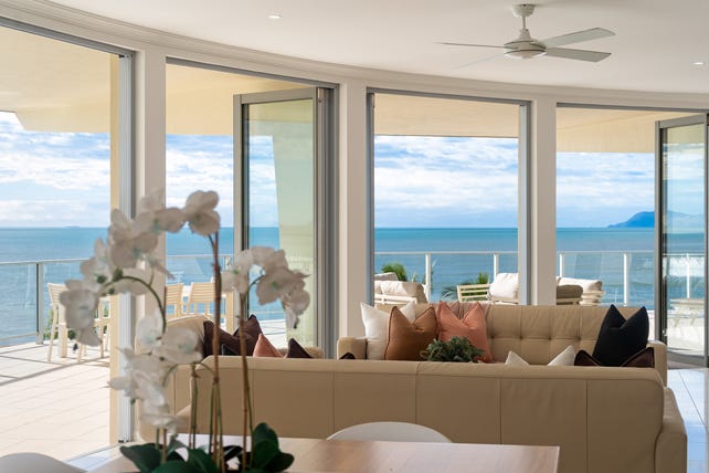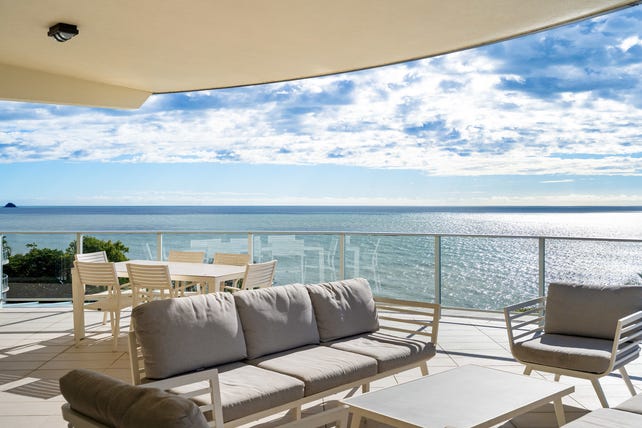 Commanding the prime position atop the prestigious Vue beachfront complex, this spectacular penthouse sets a new benchmark for luxury living in Far North Queensland. Arguably one the most exceptional residences in the region, it boasts uninterrupted wraparound views across the Coral Sea, with a sweeping panorama that spans from Yorkeys Knob to the iconic Fitzroy, Green, Scouts Hat and Double Islands.