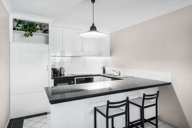Flooded with natural light and designed for seamless indoor-outdoor living, this two-level apartment features a spacious downstairs bedroom with plantation shutters and two bathrooms (easily converted back to a two-bedroom layout). Upstairs, the open-plan living area extends to a generous balcony overlooking the stunning pool. The full-sized kitchen boasts premium European appliances, there is a study nook on the stair landing and the exceptional layout is complemented by stylish décor.