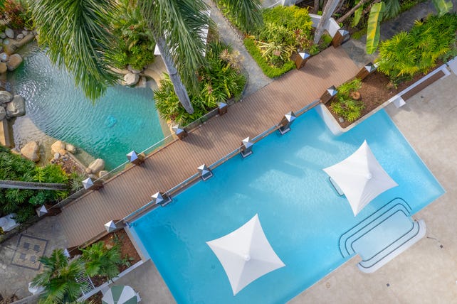 Enjoy full access to Alamanda's 5-star facilities, including lush gardens, three pools, a wedding chapel, a wellness spa, and the renowned Nu Nu restaurant and bar. Positioned directly on the beach, this is the ultimate Palm Cove retreat!