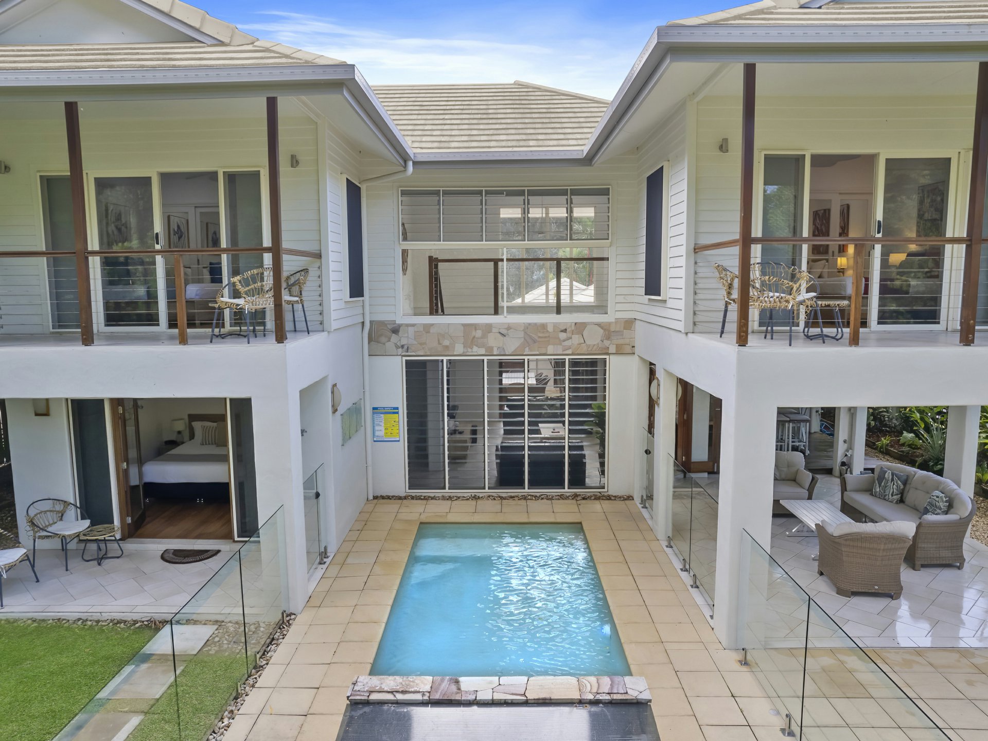 Property Features: - Gourmet kitchen with stone bench tops, island bench with Gas cooking - Timber bifold doors and louvers throughout capturing the breezes of Far North Qld - Feature Glass panels throughout the house allowing light-filled living spaces all day and star Gazing during the evening. - Solar Heated Saltwater in-ground pool with waterfall 6m x 2.5m - Grand King size Master bedroom to the rear of the home, complete with spa bath, dual vanities, and double showers. This zone also doubles as a perfect Air BNB accommodation with separate entrance. Enjoy a little extra income! - 2 large bedrooms upstairs, perfect for your guest with 2nd bathroom and each with their own balcony looking out towards the mountains the bush backdrop - 4th bedroom or study downstairs just off the internal courtyard - Separate Living and Dining - Split system air-conditioning throughout - Floating timber floors to Bed 1,2 & 3 - Majestic tropical gardens with many varieties of tropical plants complete with automatic Irrigation - Internal laundry - Side gate access to the rear yard - Double lock up garage with workshop/storage area - Corner block 600m2, only 1 neighbour private oasis