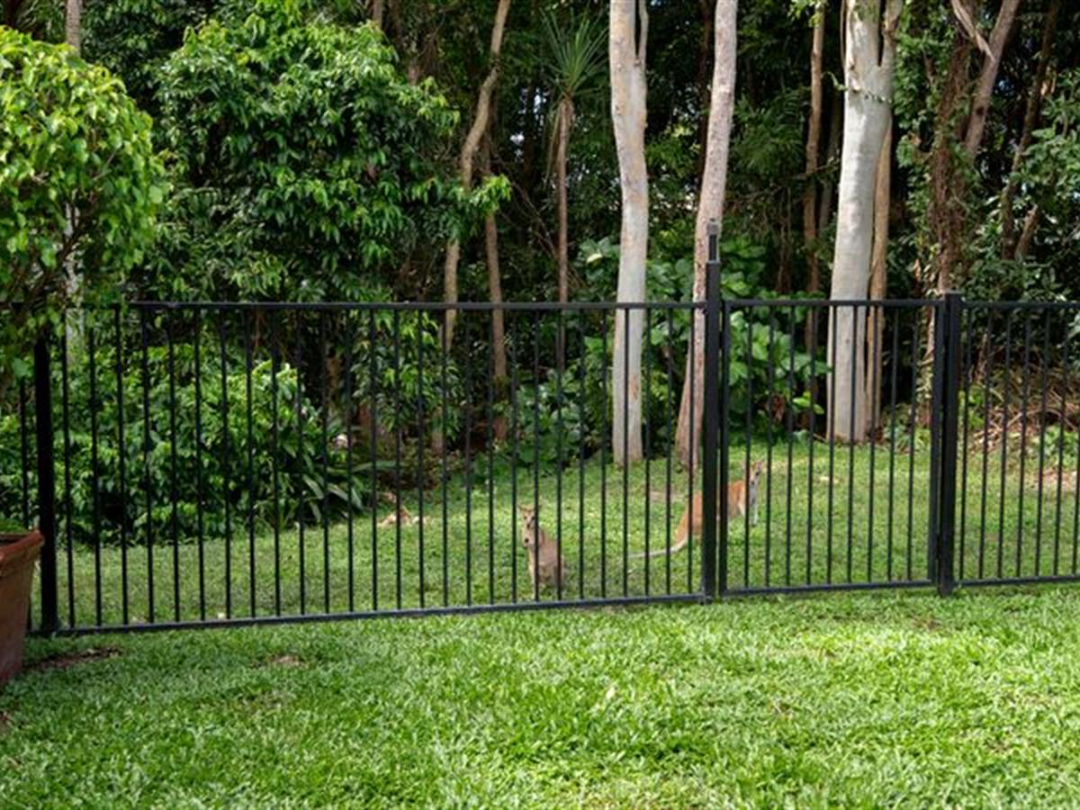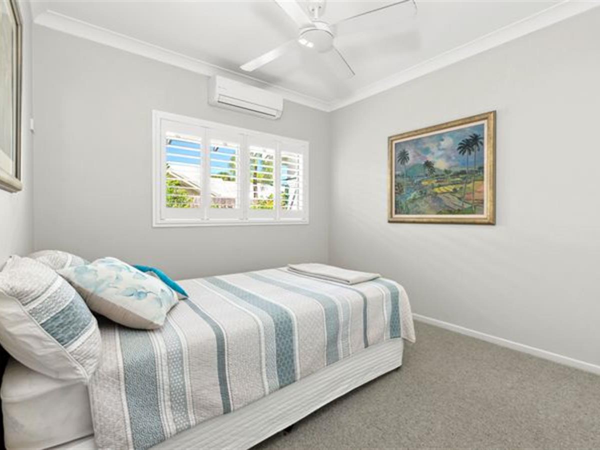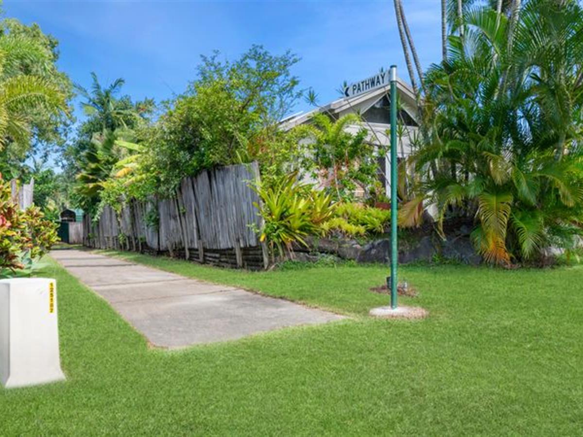 Grand 3 bed property, 5 minutes to Clifton Beach. On entering the home you are greeted in a large entry foyer with double opening doors and high ceilings. This in turn accesses the separate study and media room on the left and the bedroom areas on the right. For those who work at home, the (2.6m x 3.8m) study has a direct external access from the driveway. Beautifully presented, this delightful large 3 bedroom family home has all the comforts required in the tropics. As you enter you are greeted with a lush mature tropical vista from the kitchen and living area. With no rear neighbour, the large under main roof patio / entertainment area overlooks the pool and lush, mature rainforest. Relax and watch the wonderful birdlife and the wallabies come to up to the fence. The large open plan living area includes a media room, Fully refitted kitchen with quality appliances, dining and lounge. The master bedroom has a fully fitted WIR and ensuite. The 2 remaining bedrooms are serviced by a large separate bathroom and separate toilet. Natural cooling, enhanced by a high pitched roof and insulation. Plantation shutters fitted throughout.