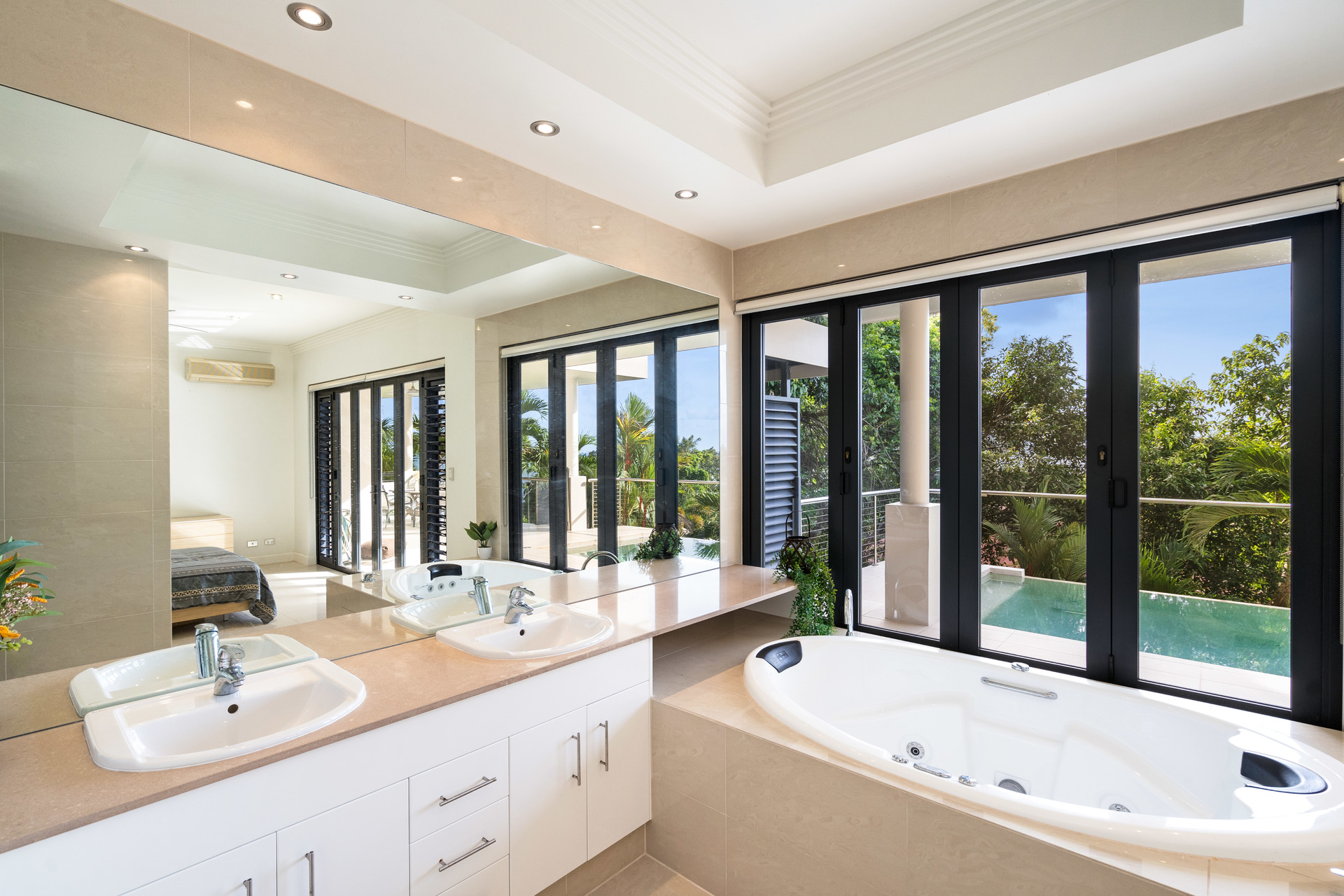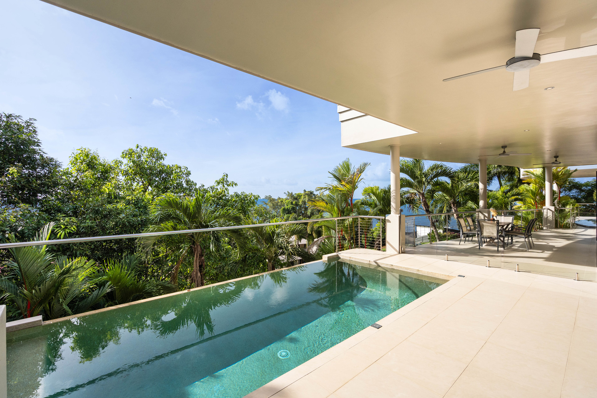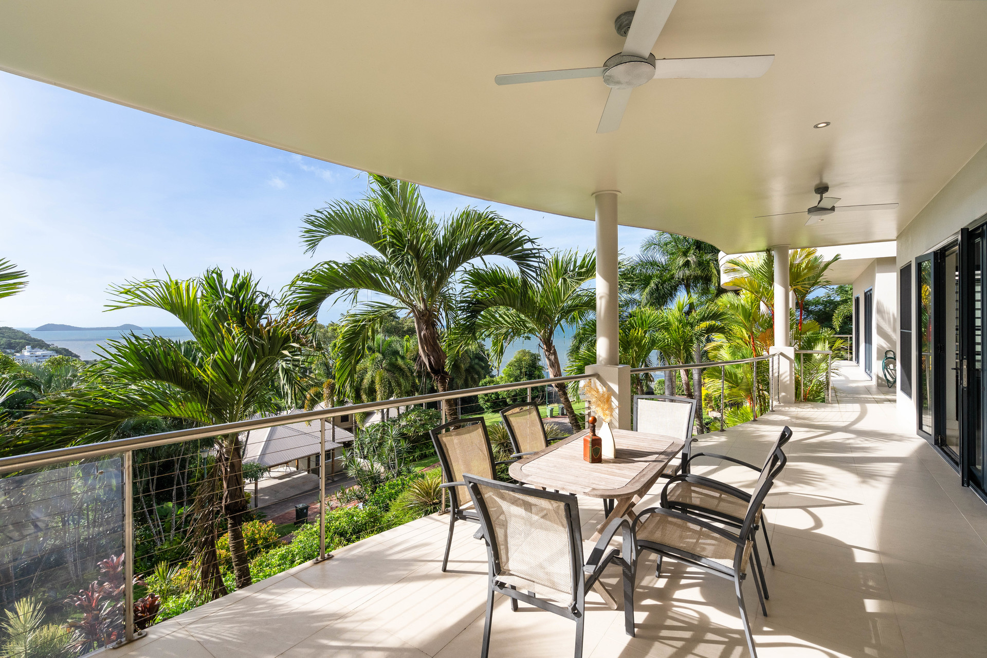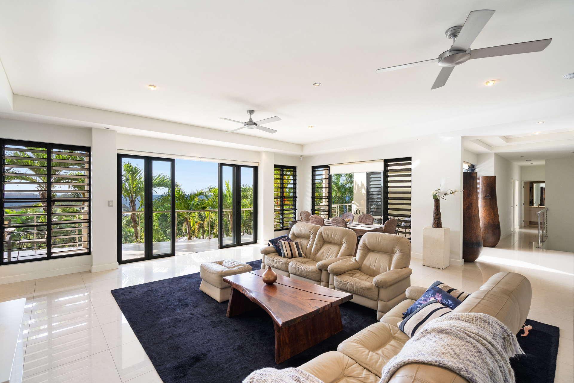 - Massive floorplan set over two levels, with over 600m2 under roof - Spectacular panoramic ocean views from almost every room - Sweeping open plan living, high ceilings, abundant natural light & breezes - Kitchen with high-end appliances, ocean views & servery to balcony - 3 defined bedroom wings, including large master with ensuite and WIR - Multiple living areas, 5th bedroom/study plus gym - Large swimming pool with infinity edge and stunning views - Oversized 2-car garage with height for caravans, plus 2-car carport - Established low-maintenance tropical gardens - Elevated 1,450m2 block with uninterrupted ocean views