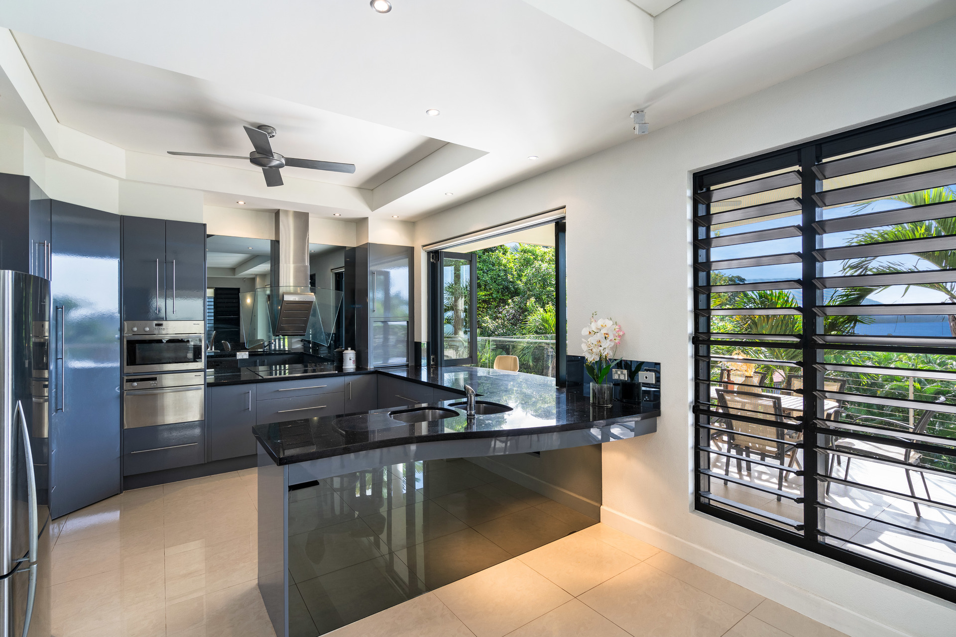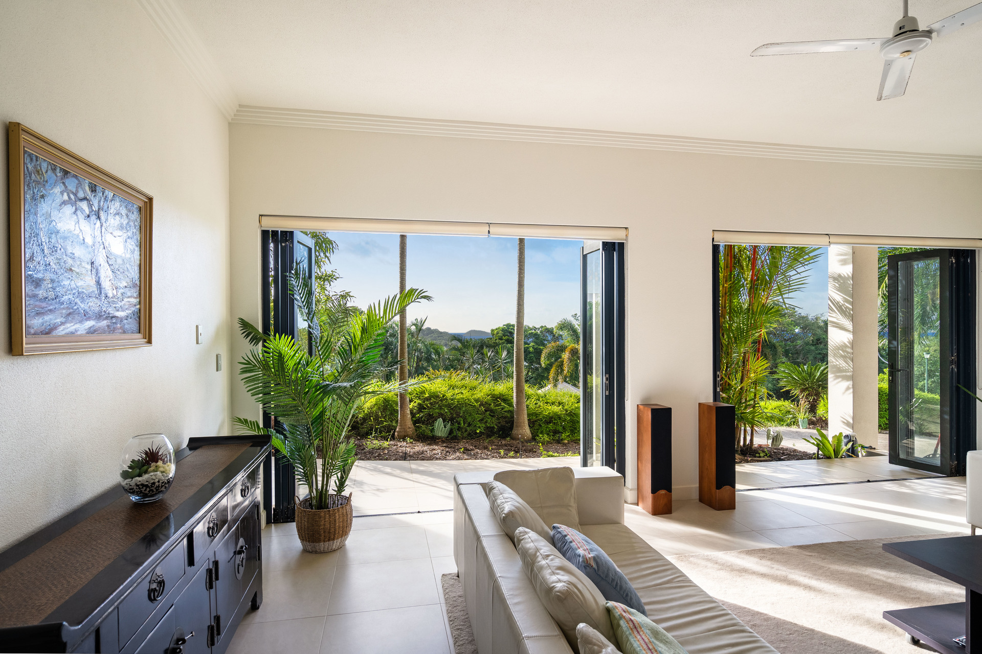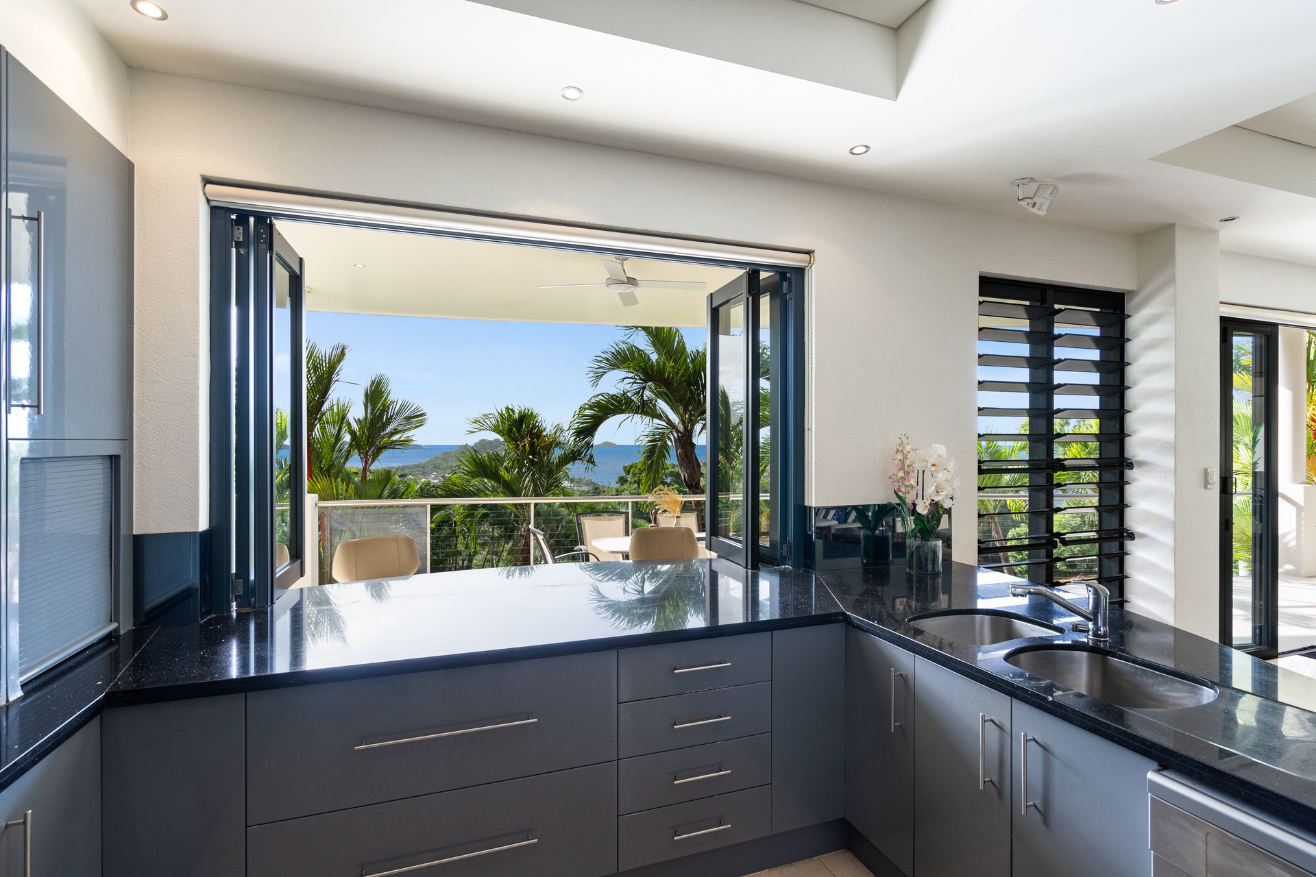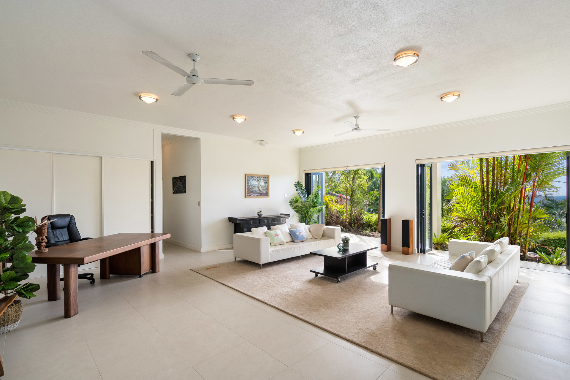 - Massive floorplan set over two levels, with over 600m2 under roof - Spectacular panoramic ocean views from almost every room - Sweeping open plan living, high ceilings, abundant natural light & breezes - Kitchen with high-end appliances, ocean views & servery to balcony - 3 defined bedroom wings, including large master with ensuite and WIR - Multiple living areas, 5th bedroom/study plus gym - Large swimming pool with infinity edge and stunning views - Oversized 2-car garage with height for caravans, plus 2-car carport - Established low-maintenance tropical gardens - Elevated 1,450m2 block with uninterrupted ocean views