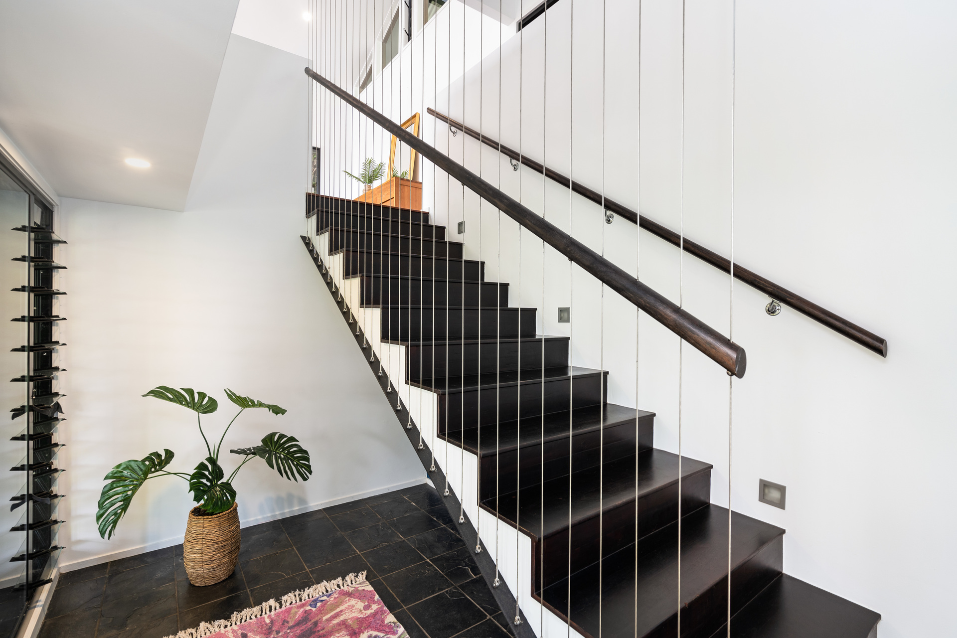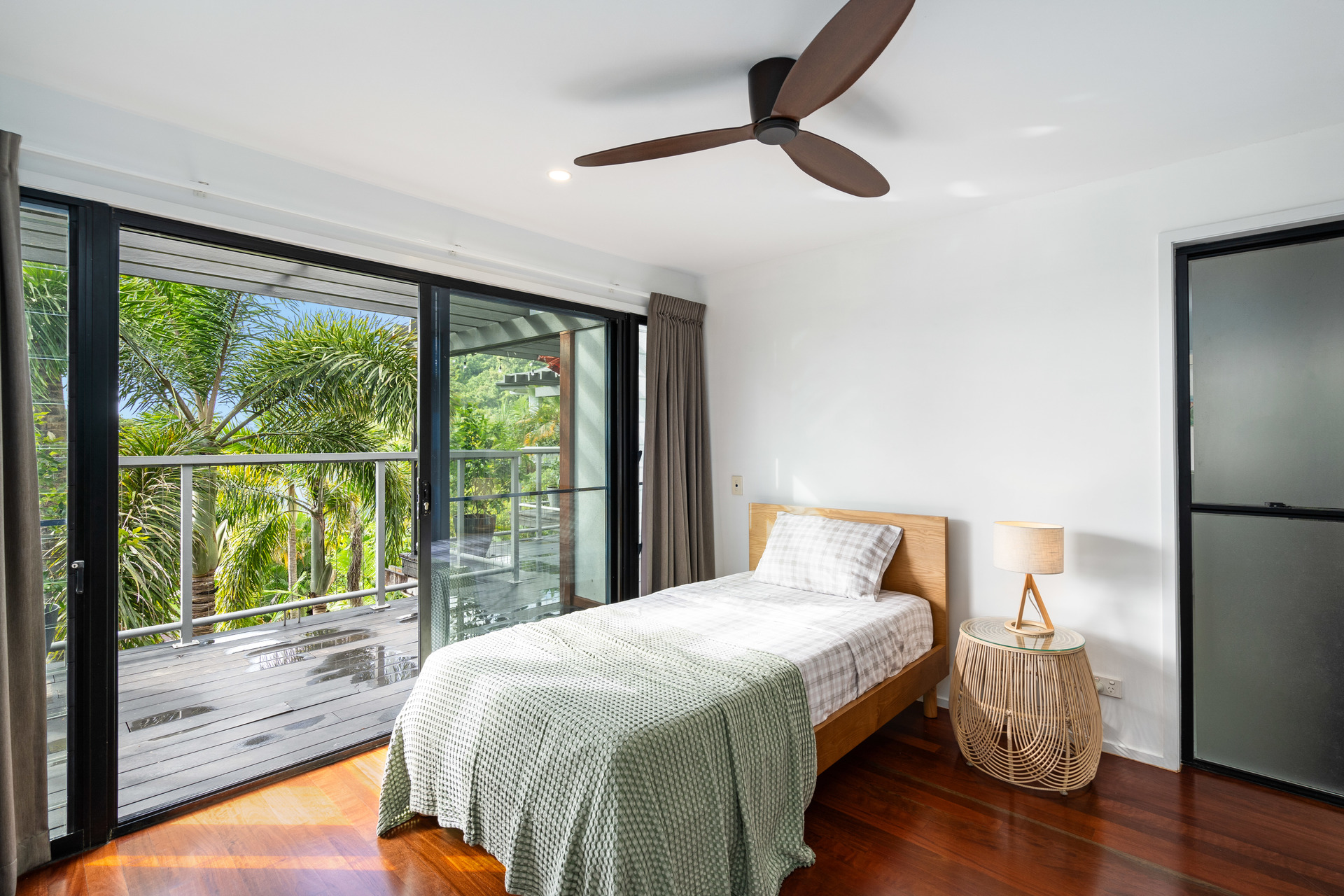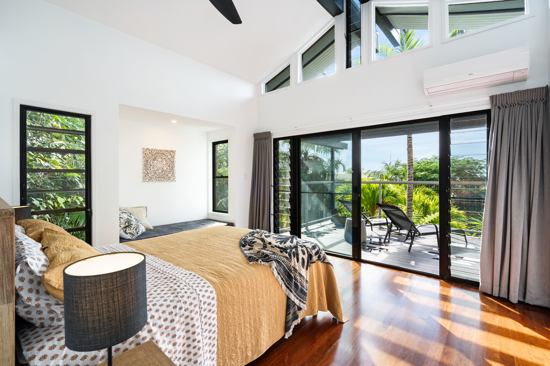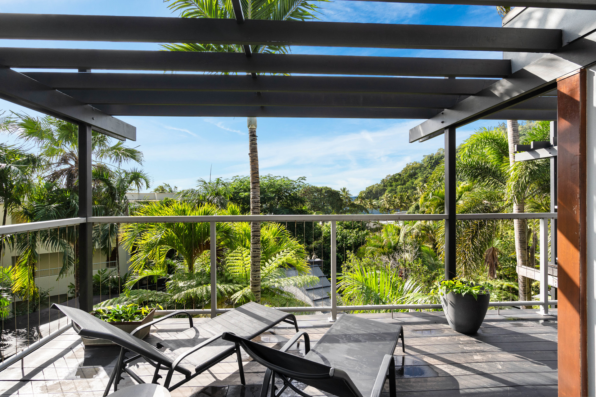 - Full-width entertaining deck at tree-top level with ocean views - Three upstairs bedrooms, all with views, plus study/fifth bedroom
