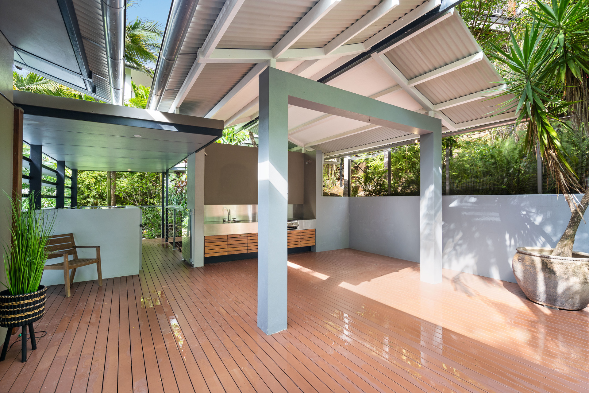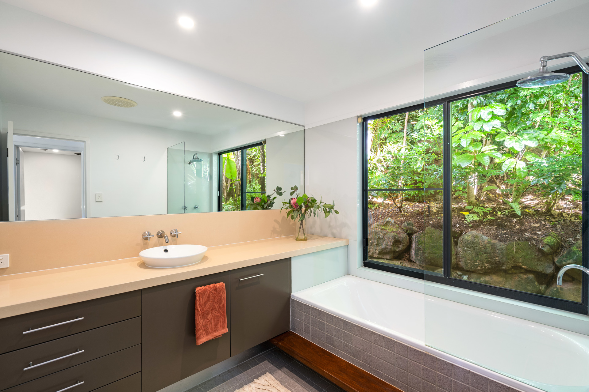 - Contemporary kitchen with sleek cabinetry, pantry, and gas cooking - Gorgeous master suite with WIR, ensuite and stunning aspect - Lower pavilion with self-contained guest quarters opening to expansive deck - Large heated pool with absolute privacy - 5kW solar power, windows fitted with UV heat reducing film - Double lock-up garage plus off-street parking for 3 cars - Elevated 1,058m2 block in white zone (low risk) with stunning gardens - Tightly held location, walk to beach, cafes, restaurants, and local shopping