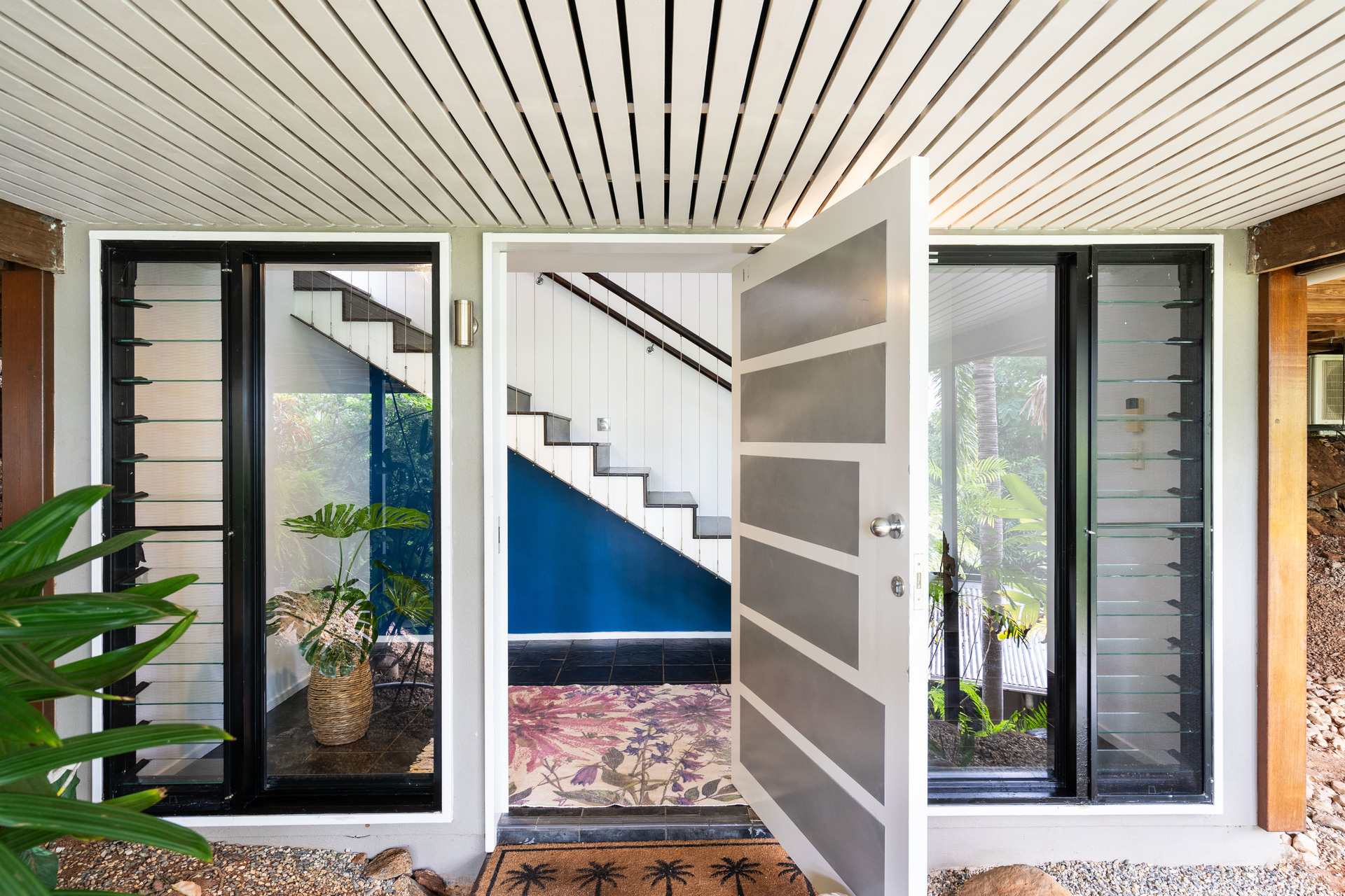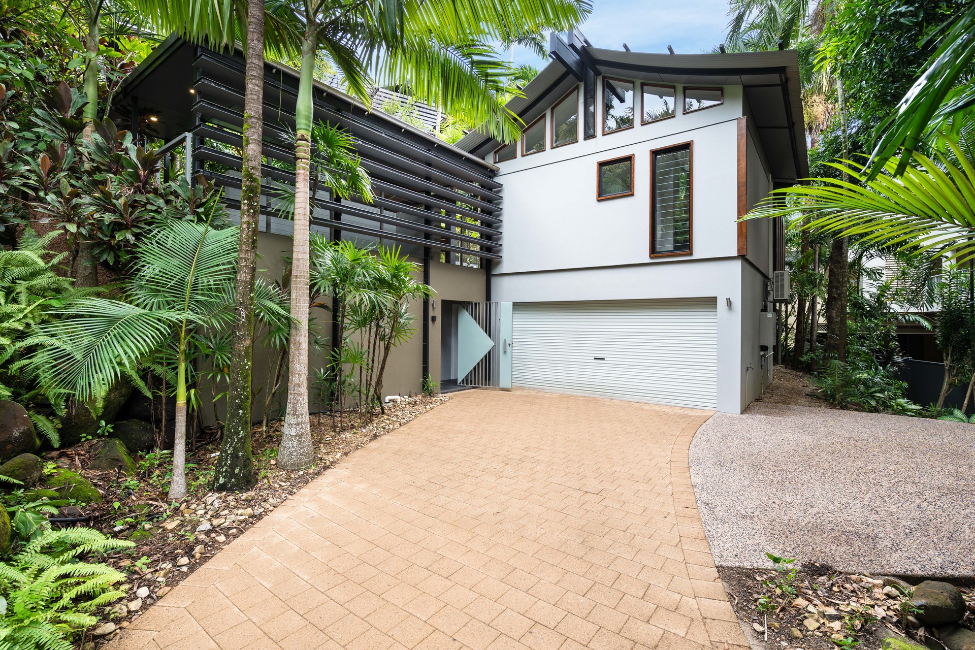Elevated Sanctuary: Ocean Views Metres from the Beach Elevated to capture the spectacular ocean views this premium location affords, this impressive contemporary home showcases detail, function, and architectural consideration. Cocooned within lush tropical surrounds, one street from the beach, the layout encompasses two spacious levels, featuring high ceilings, a magnificent full-width deck, and fully self-contained guest quarters. Appointed to the highest standards throughout, a harmonious indoor/outdoor connection, and the generous use of glass creates a private sanctuary with a luxury coastal aesthetic.