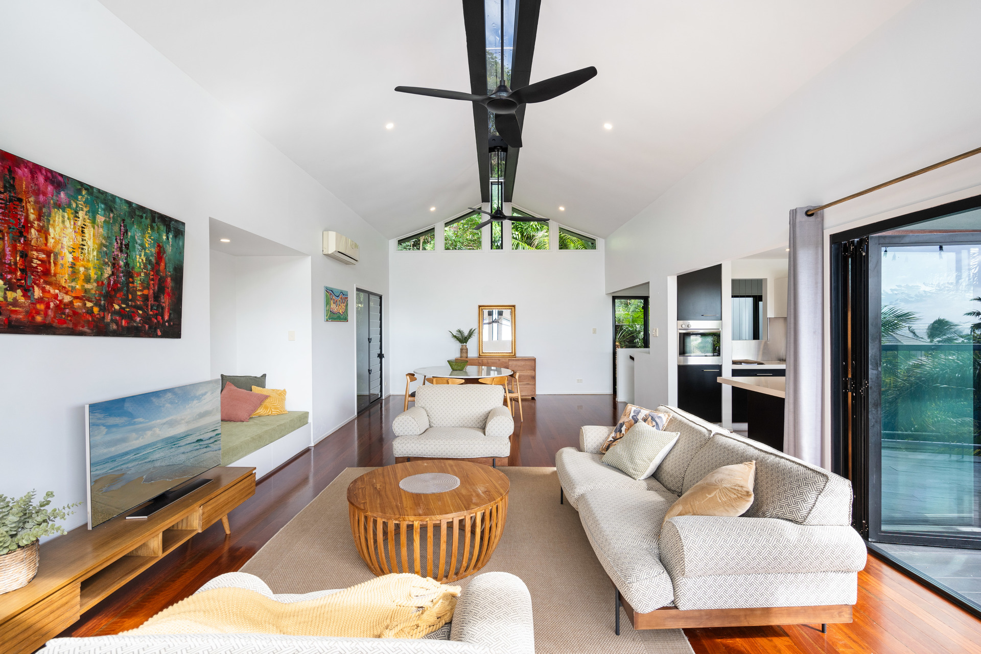 - Private, elevated location, one street back from the beach - Multi-award-winning design set over three main levels - Light-filled open plan living, with high ceilings and bi-fold doors to deck