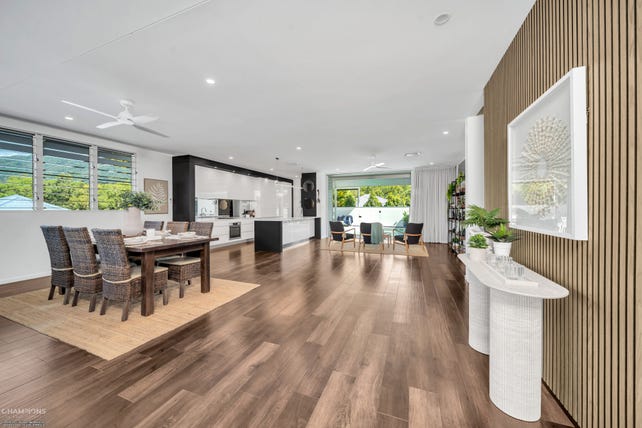 Coastal lifestyle meets contemporary design in this stunning Palm Cove residence. Positioned in the sought-after Oceans Edge Estate, this home offers a seamless blend of relaxed sophistication and everyday functionality. Walls of louvres capture the cooling breezes and frame the breathtaking mountain views, creating an airy, tranquil vibe throughout. With the beach, jetty, and some of the region’s best cafes and restaurants just a short stroll away, this is tropical living at its finest. A beautifully balanced home designed for those who want lifestyle, location, and livability all in one.