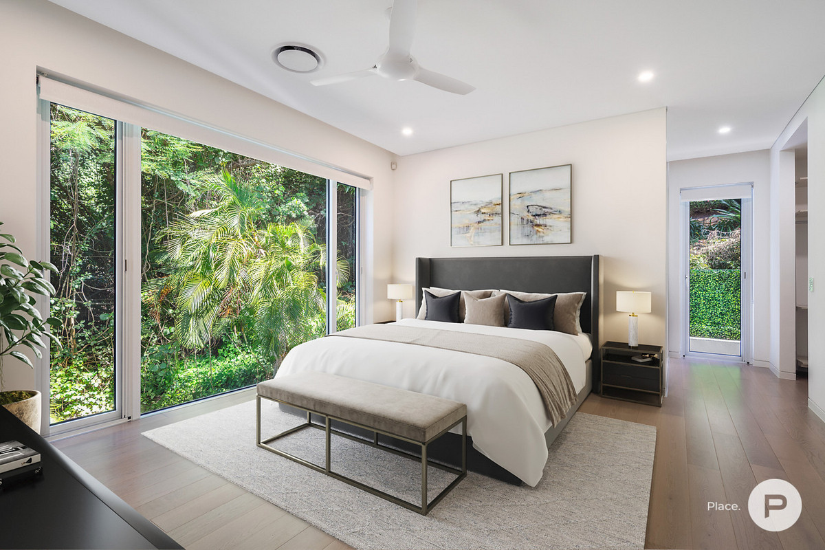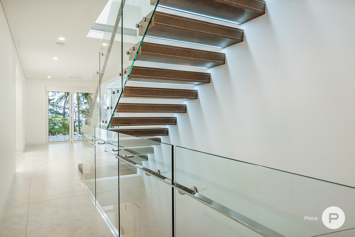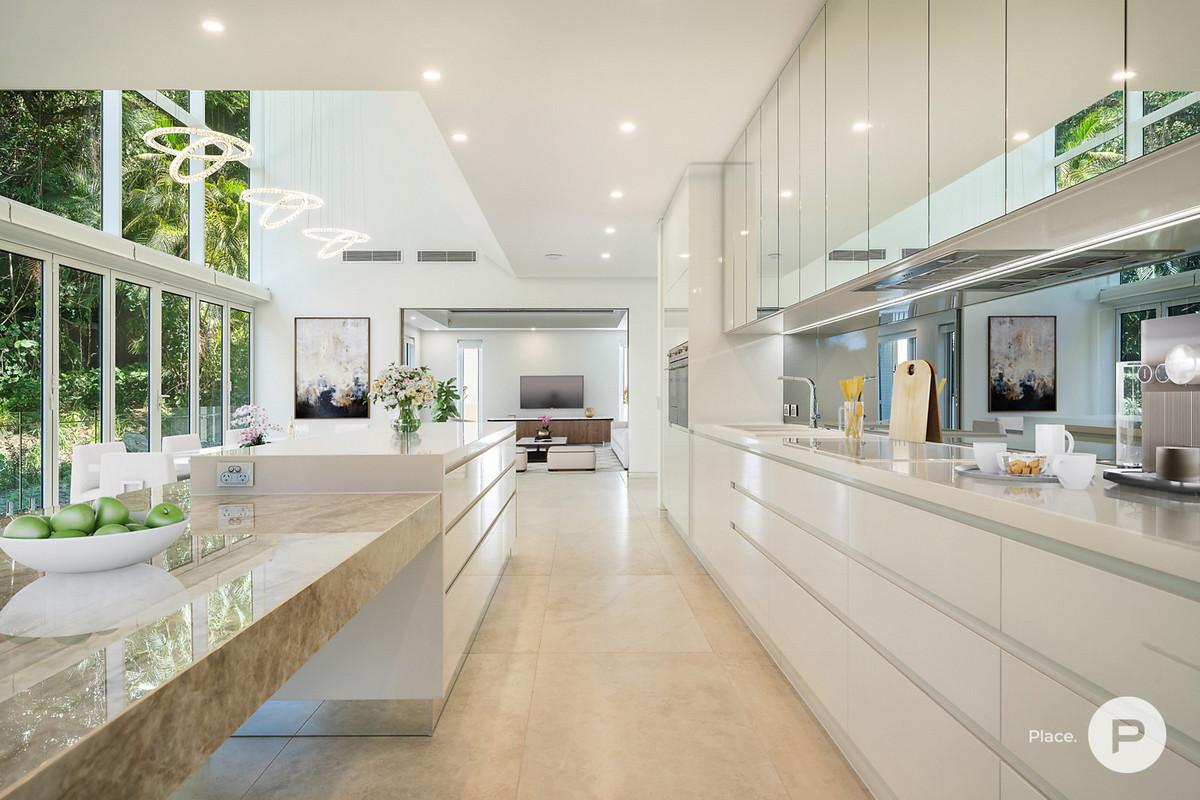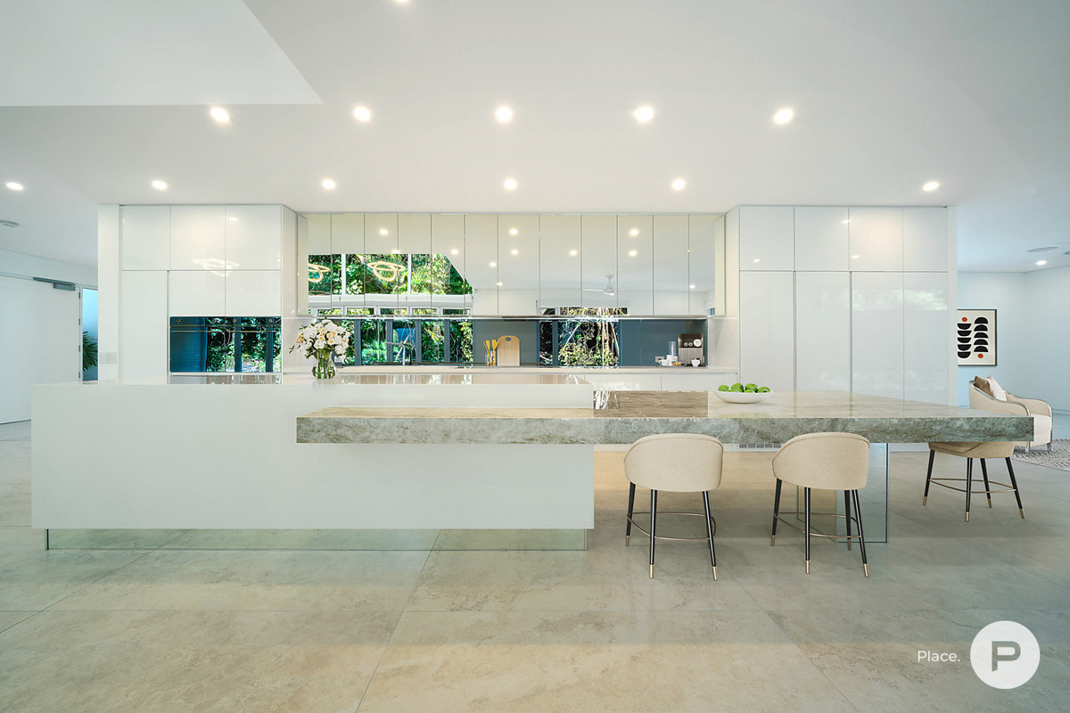 Complete with custom joinery and plenty of full-height glass, the property also features Italian marble and ceramic-tiled floors. Warm stone and timber details are also found throughout. Other notable details include secure parking for three cars, a home automation system, ducted air-conditioning and ceiling fans.