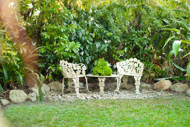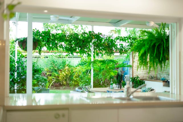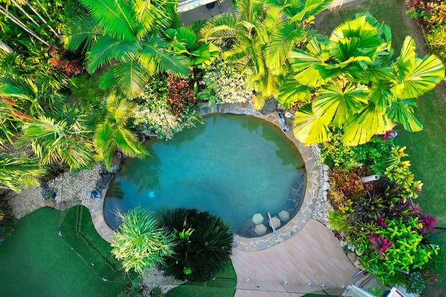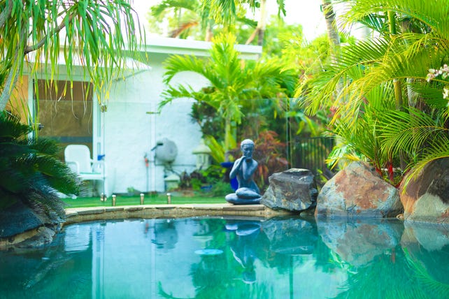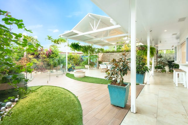 - Large 931m2 Block, fully fenced block surrounded by established Botanic like Tropical gardens, secret courtyards, veggie gardens, winding pathways and combination of lush green Buffalo and low maintenance artificial lawns.