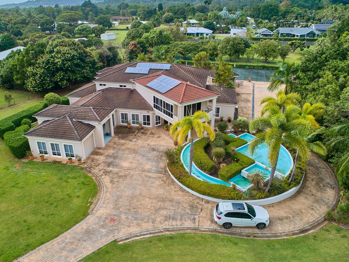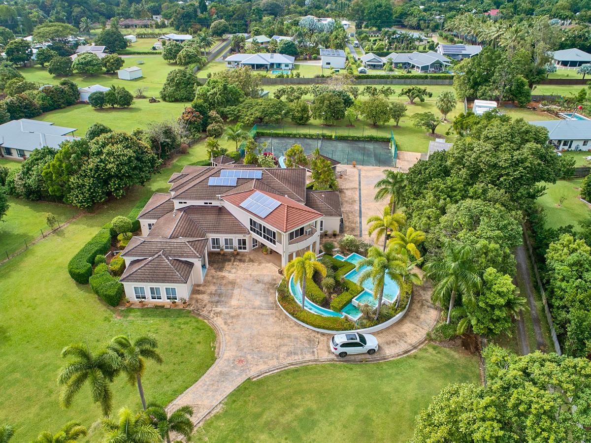 - Open multi-generational living plan - Multiple indoor and outdoor entertaining areas - Huge master bedroom and oversized bedrooms throughout - Lagoon style pool with waterfall, waterslide and spa - Full size tennis court - Guest quarters with kitchen and separate office - Tiled triple garage