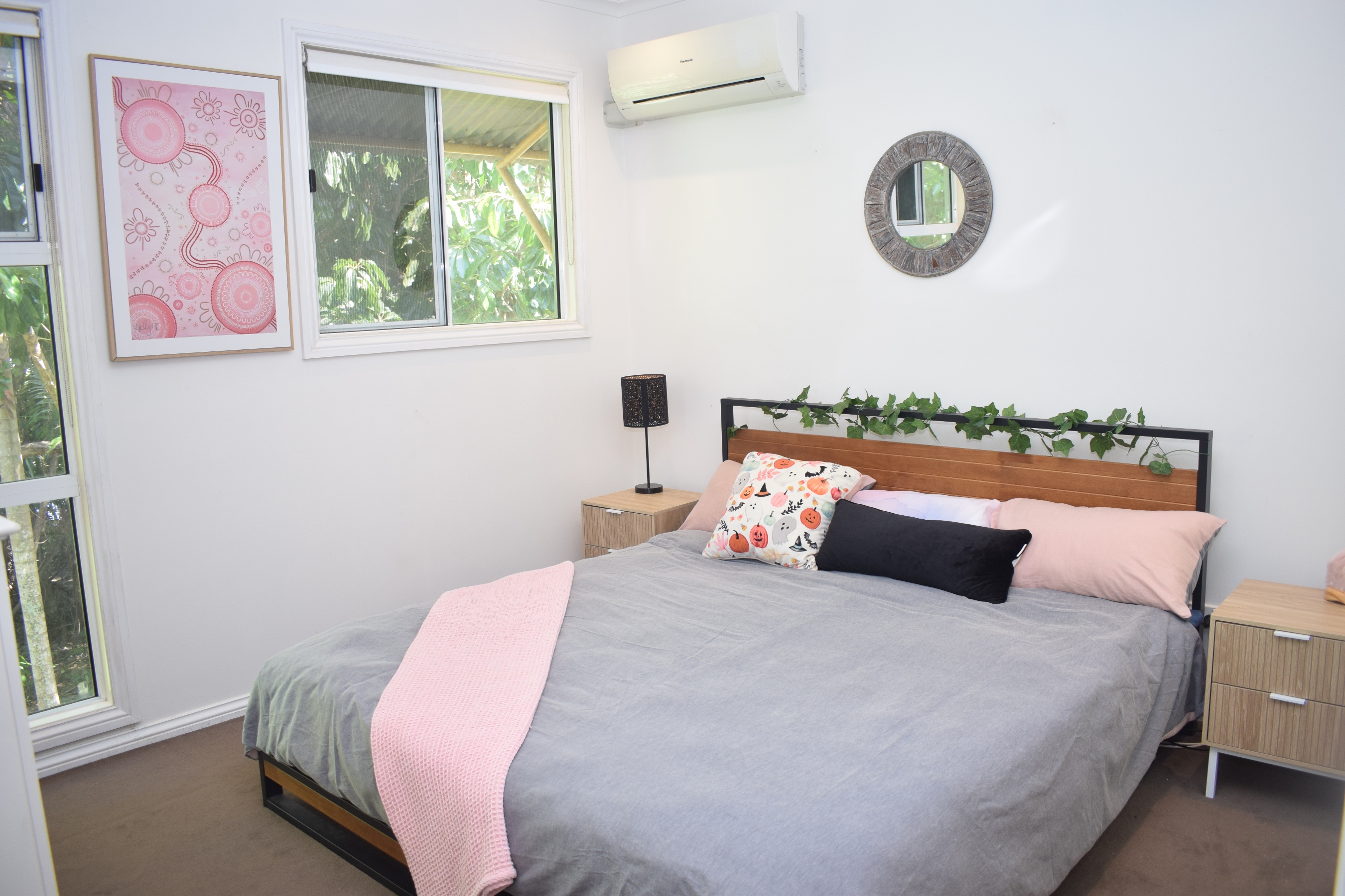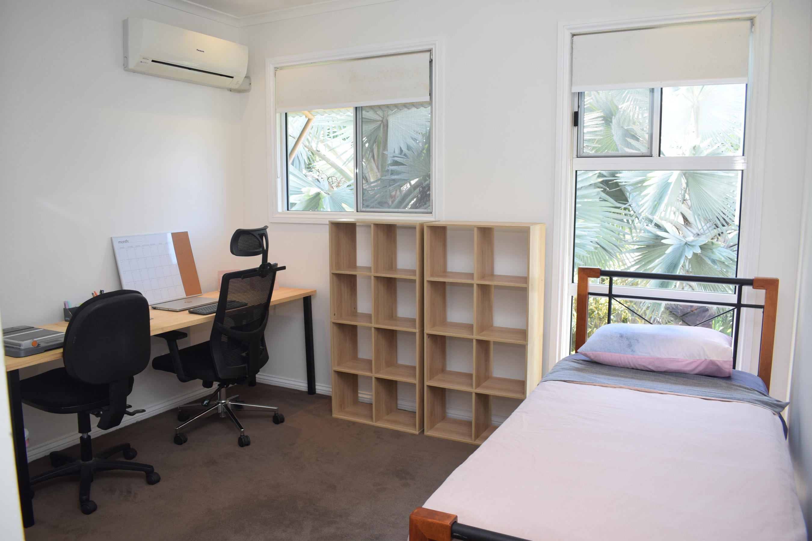 *Two spacious bedrooms, carpeted for comfort, both with split system air conditioning, ceiling fans, and large wardrobes. The master bedroom boasts an ensuite, tropical garden outlook and direct access to the large back patio.