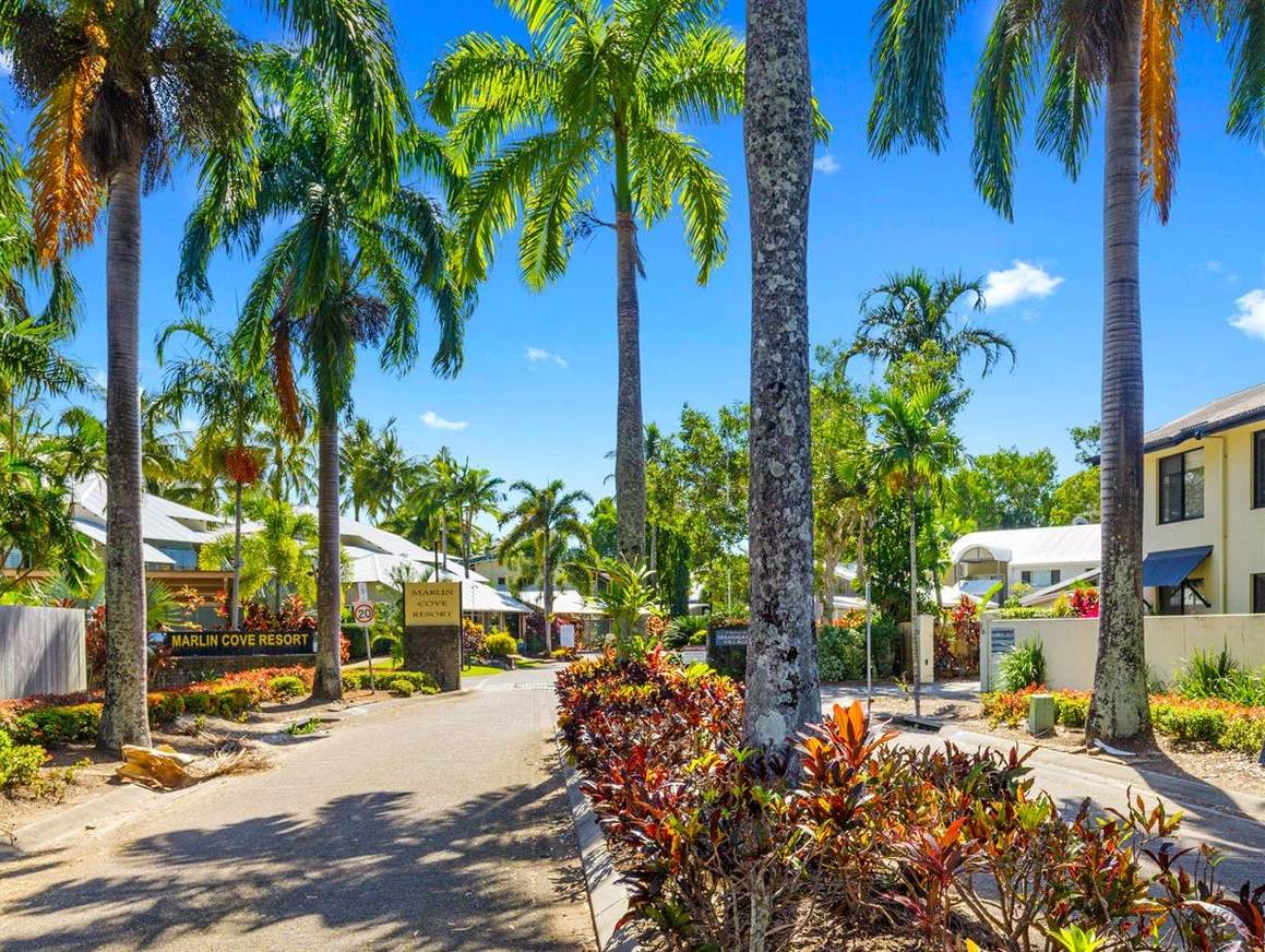 FIVE STAR RESORT LIVING ON TRINITY BEACH Located in the coveted Marlin Cove Resort is this beautiful two-bedroom, two-bathroom unit for sale.