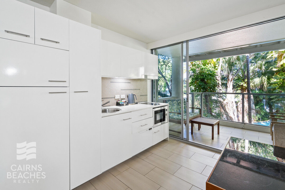 Situated within Drift, a sought-after resort on the palm-lined shores of Palm Cove. The apartment boasts a private balcony overlooking a serene turquoise pool and lush tropical gardens.