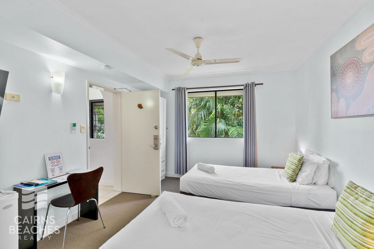 Lush tropical, idyllic location This delightful 2 bed 2 bath dual key furnished apartment is resort style living at it's best, with a spacious living area overlooking the pool. There are 2.5 acres of lush tropical gardens just waiting to be explored along with an on-site cafe and a wellness spa. All this is perfectly positioned only a 10-minute stroll from the heart of Williams Esplanade with everything you could ever need on hand. Well positioned Mango Lagoon complex is quiet and suited for those who like to relax, with onsite facilities such as a Wellness Spa and 4 pools . Great for the savvy investor looking for a professionally managed holiday apartment to provide an opportunity to add to any investment portfolio.
