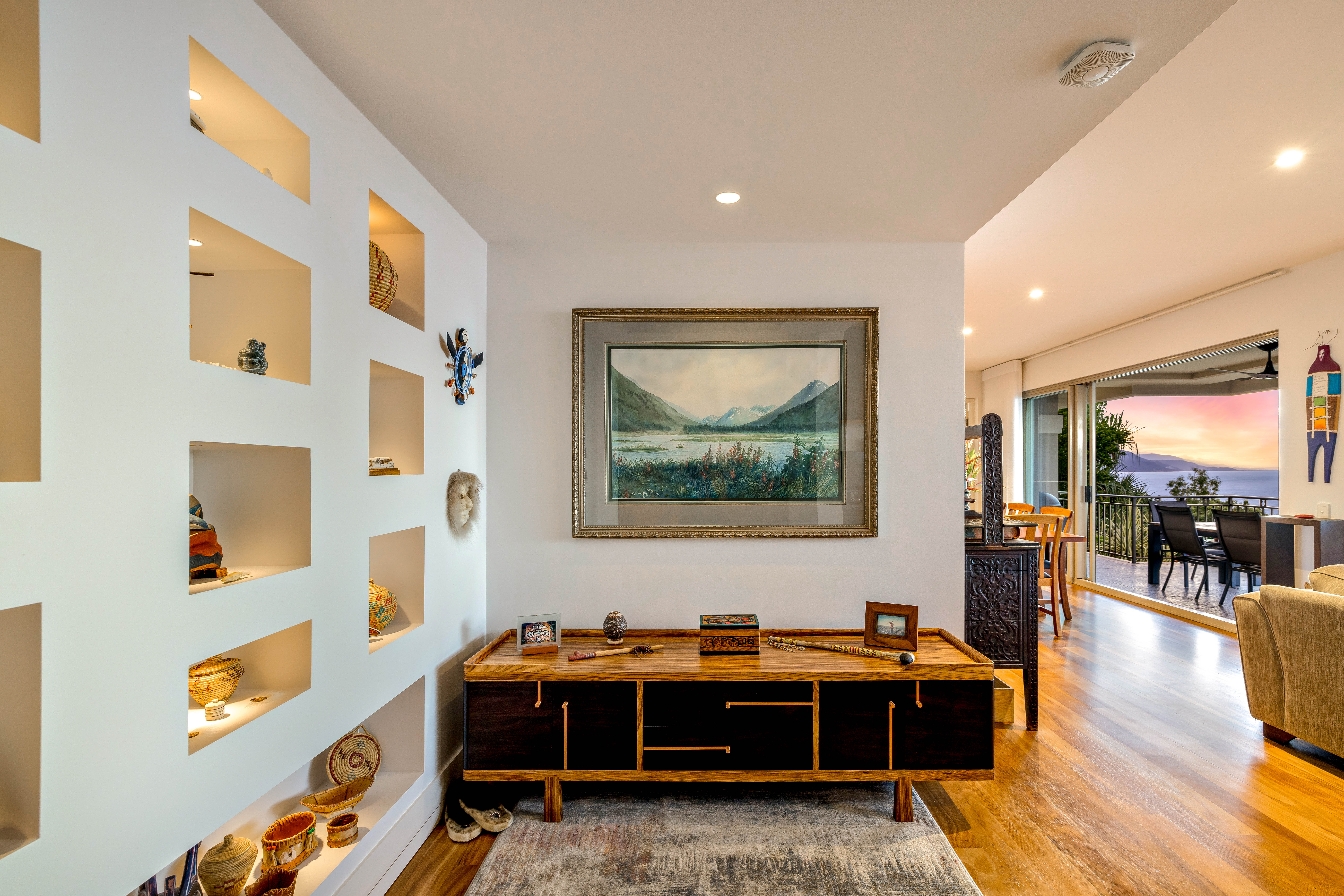 Other recent improvements include: • Art display wall in entrance with LED feature lighting • Storage cupboards & cabinet behind art display wall • Bespoke butler pantry recess • Hardwood floors in both bedrooms • Luxaflex automated blinds in main living areas provide UV protection • Two Luko commercial ducted dehumidifiers • Two Mitsubishi Heavy Industries air conditioners • Led lighting throughout • Five 'Big Ass' ceiling fans inside and one outside