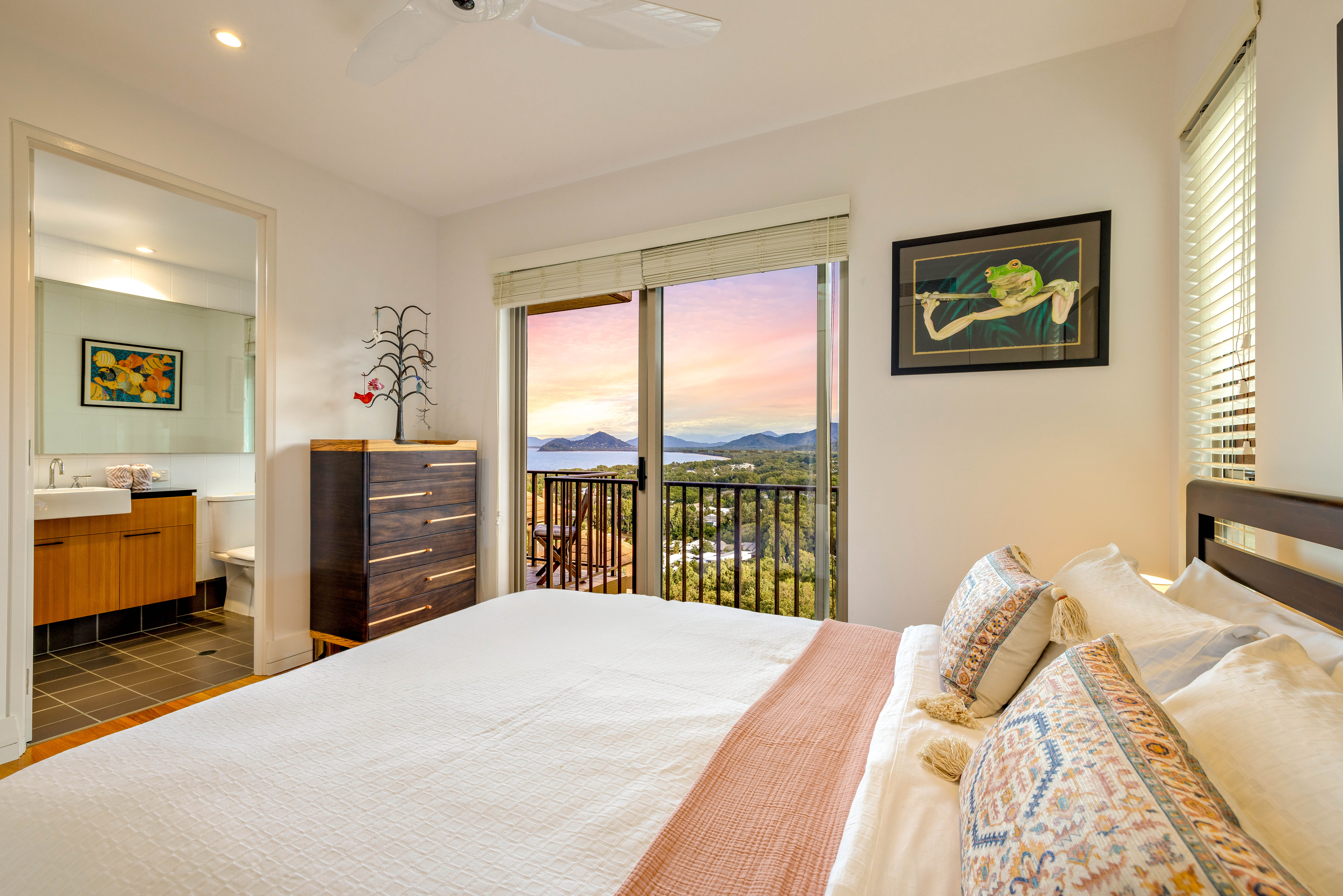 Second Bedroom - Guests will delight in waking to views over Palm Cove, and the coastline beyond, framed by sliding doors leading onto the southside balcony. This bedroom is complete with built-in wardrobes and a shower ensuite bathroom.