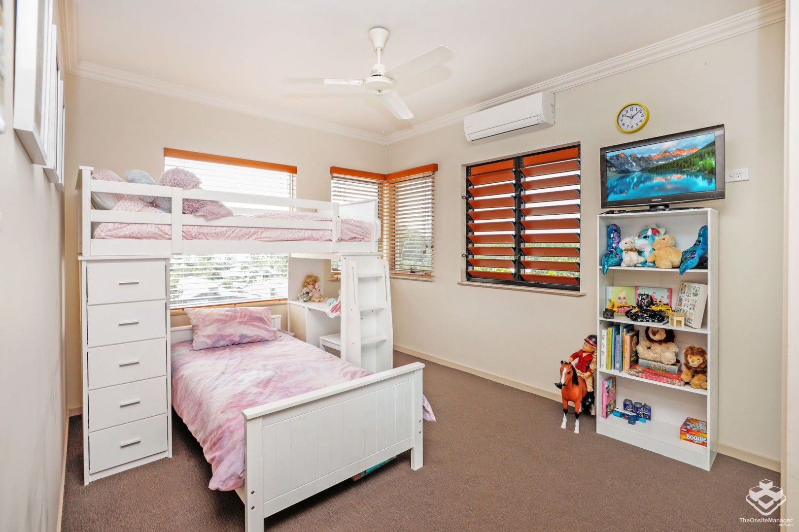 The second bedroom has prime position with several windows to capitalize on the light and views. All 4 bedrooms are quite spacious with built in robes and split system air conditioners in each.
