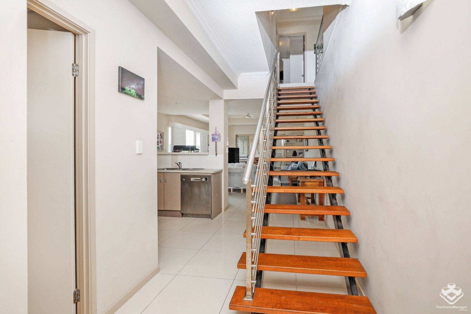 The main level also boasts a large kitchen, laundry and toilet before moving up to the second level.