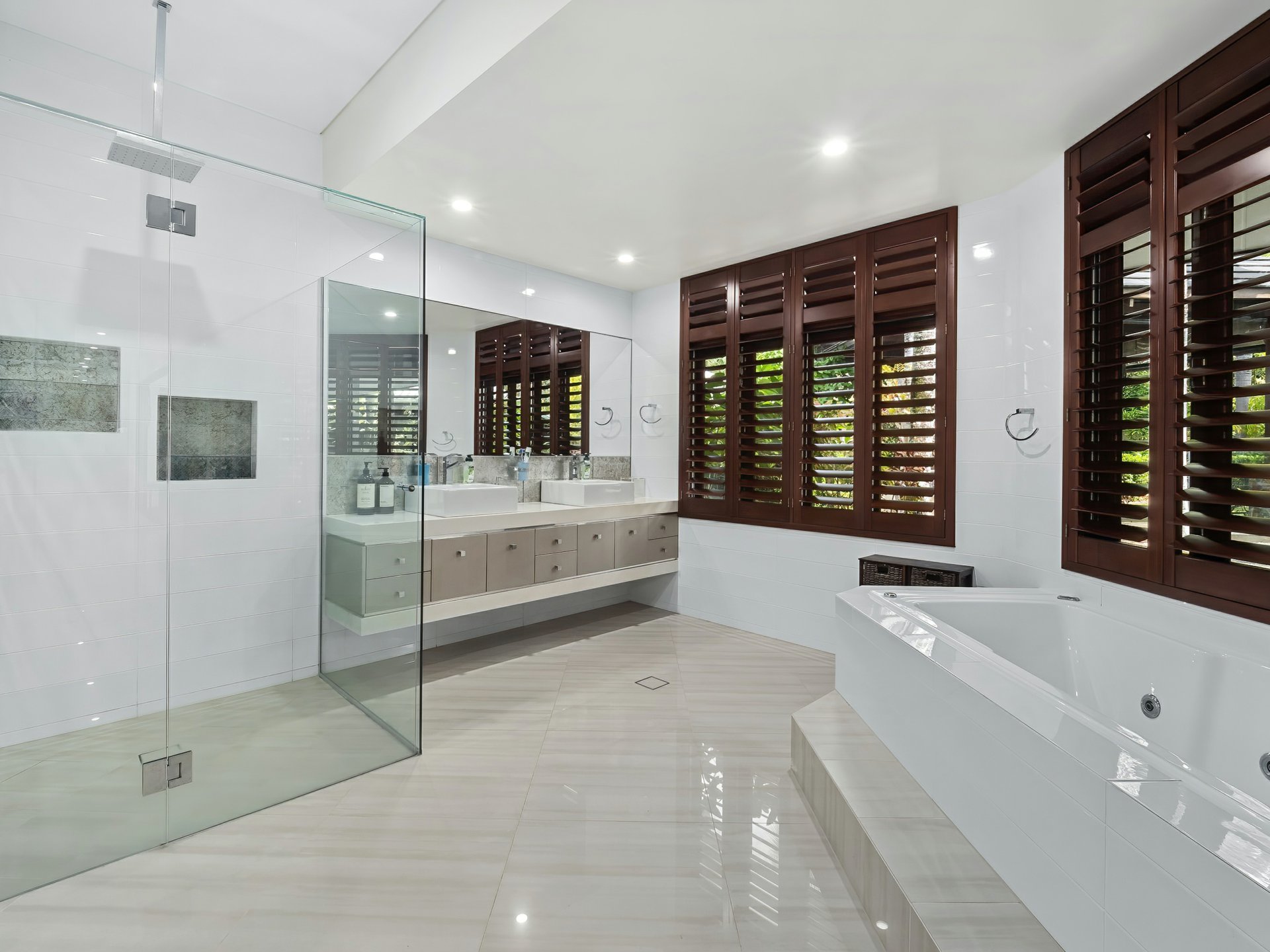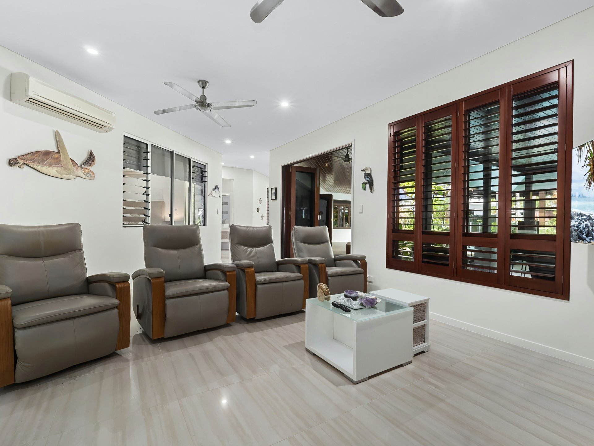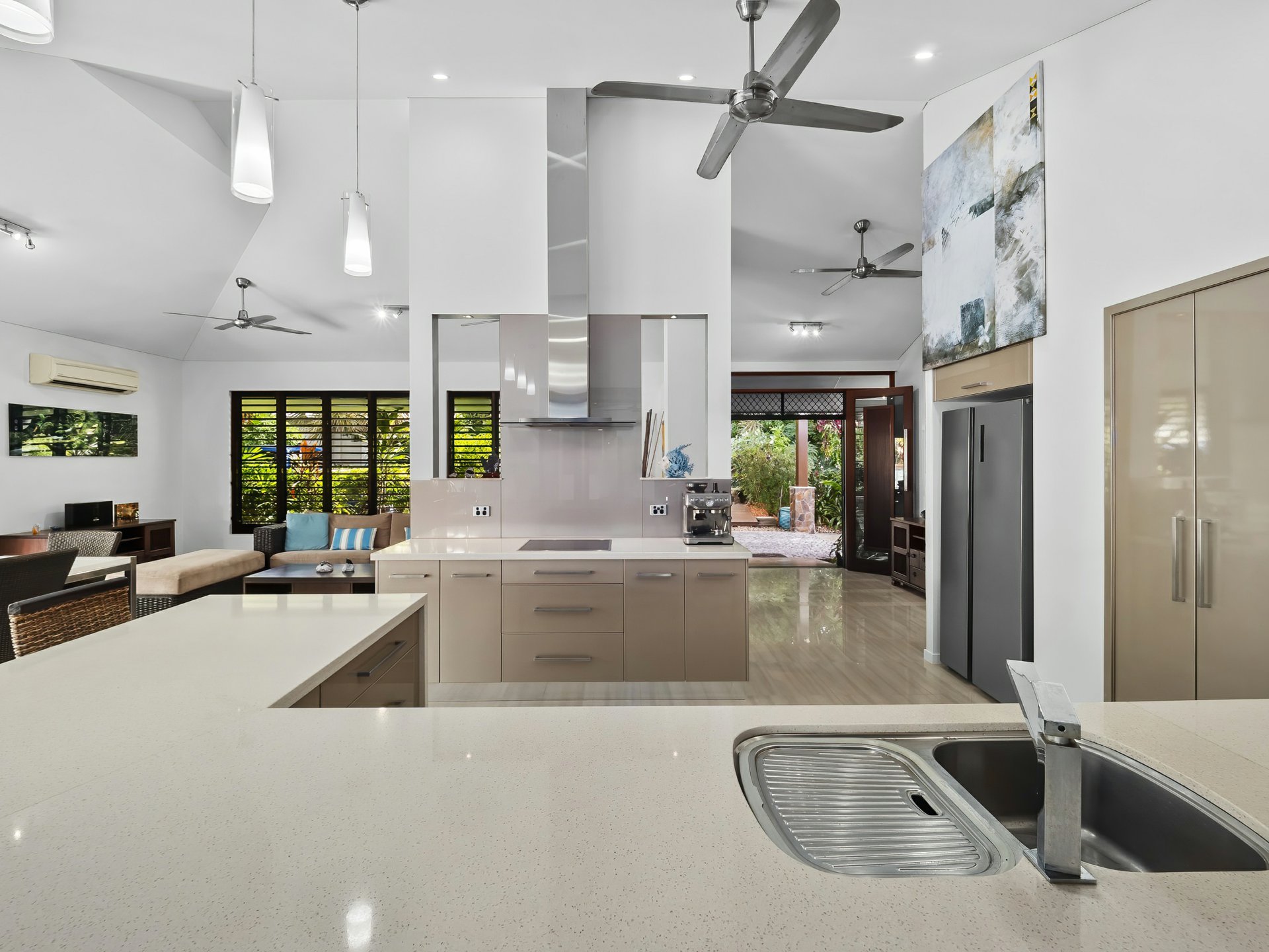 Large bi-fold timber doors, windows and timber louvres have been carefully positioned to capture all the breeze, very little need for air-conditioning.