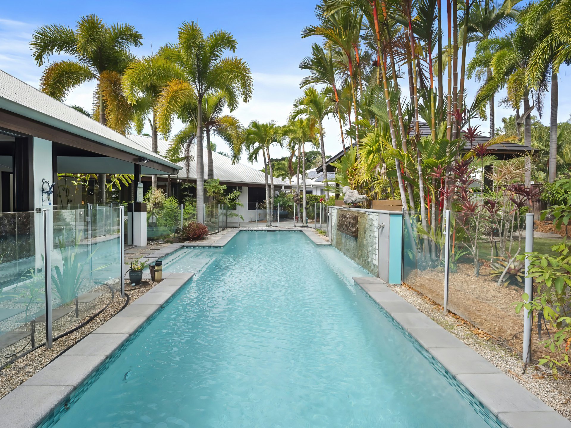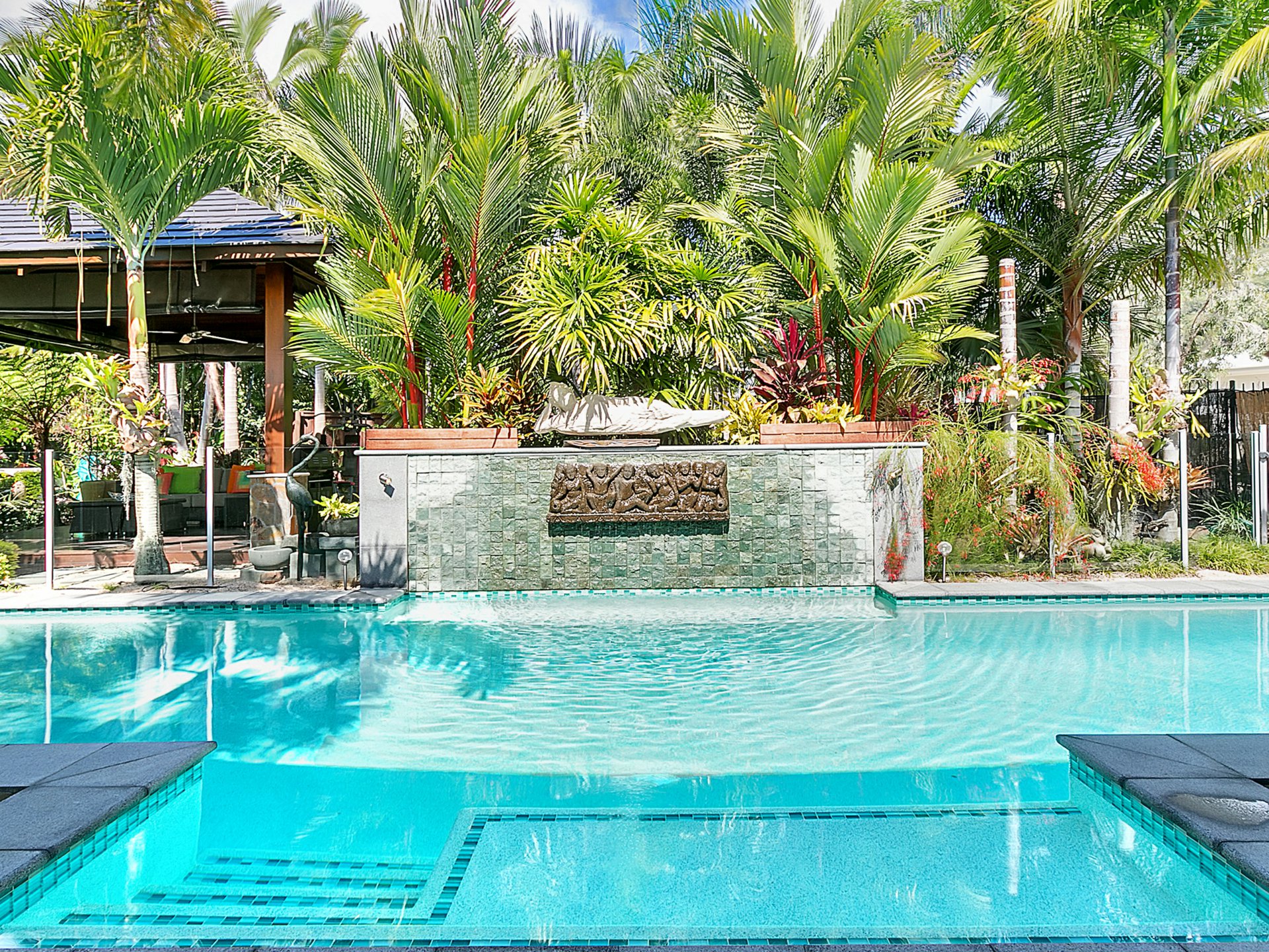 - 13 x 3 meter HEATED in-ground lap pool surrounded by tropical gardens complete with Indonesian Relief Sculpture water feature