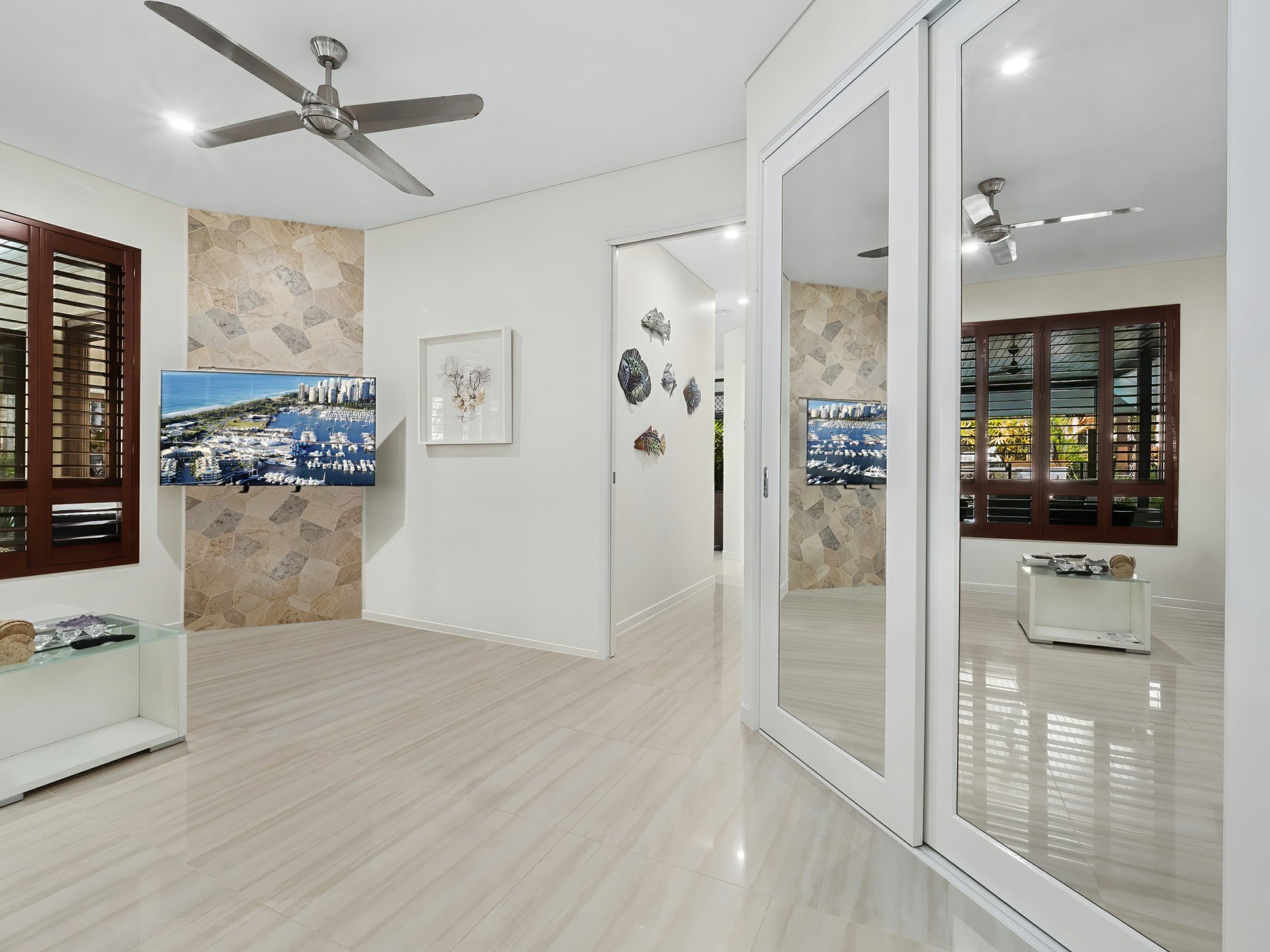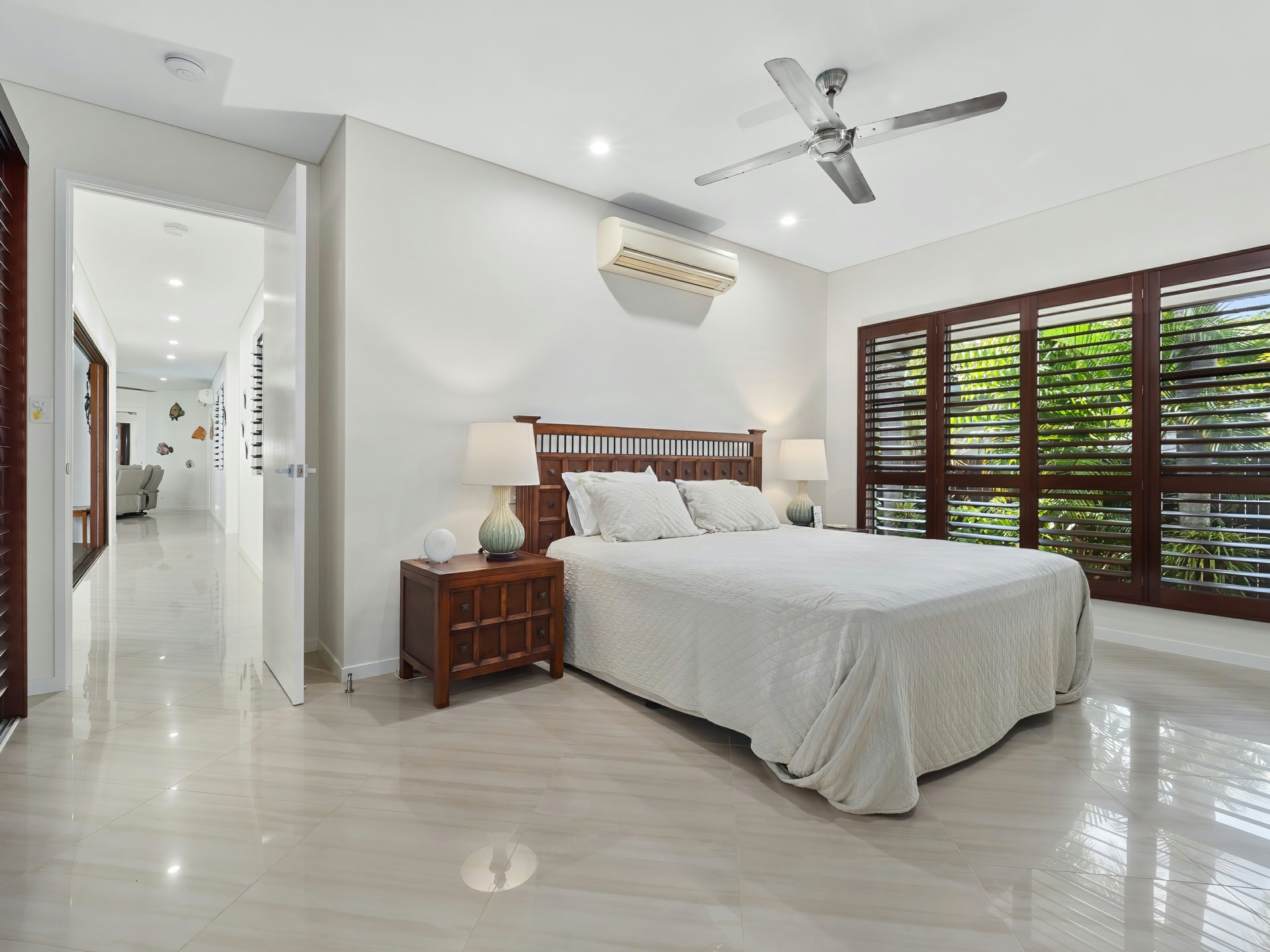 - Cool Porcelain tiles used throughout living, hallways & Master bedroom