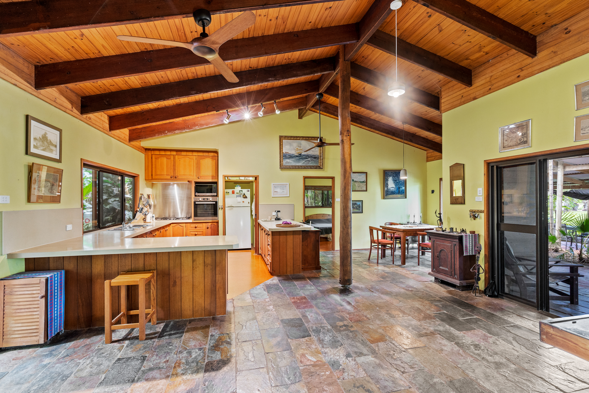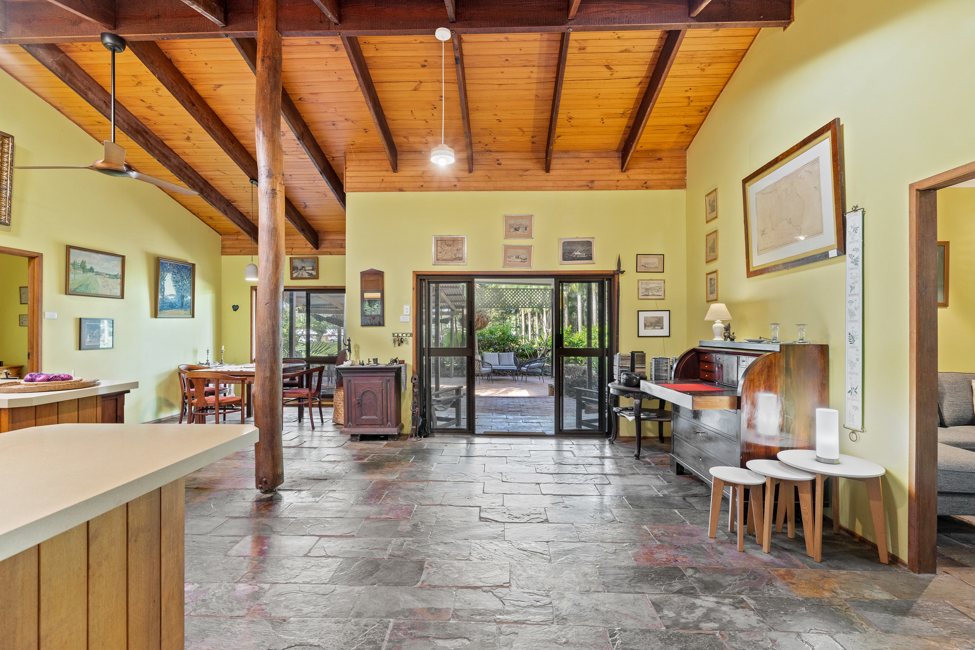 - Completely flat 8,040m2 block, ideally configured to sub-divide into two - Spacious single-level floorplan, high ceilings and open-plan living - Functional layout includes two patios for al fresco entertaining - Huge kitchen with timber joinery, abundant bench and cupboard space - Separated master with WIR, ensuite and lovely outlook - Original slate floors and feature timber ceilings in living - 2-vehicle carport, large shed, no high-maintenance gardening
