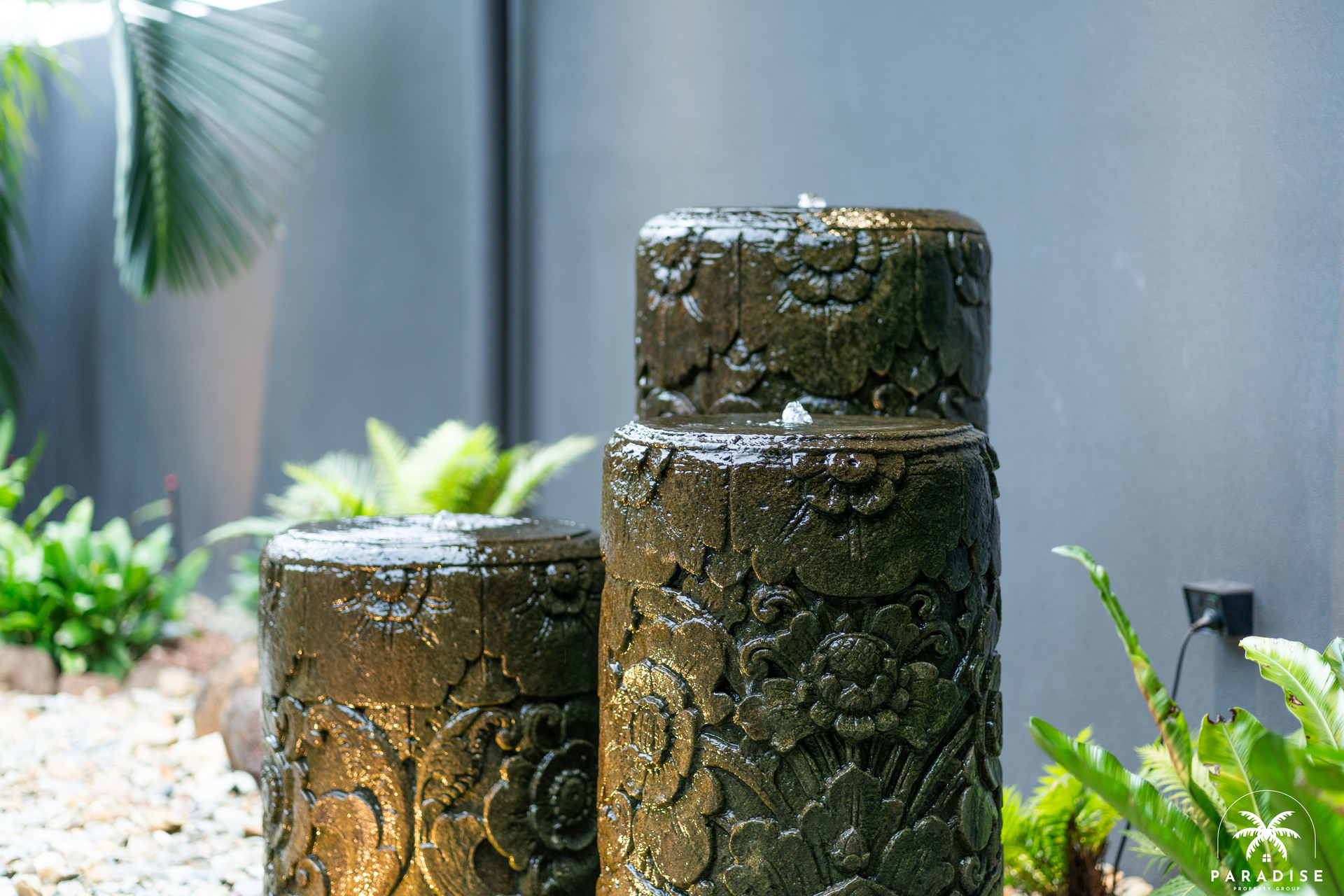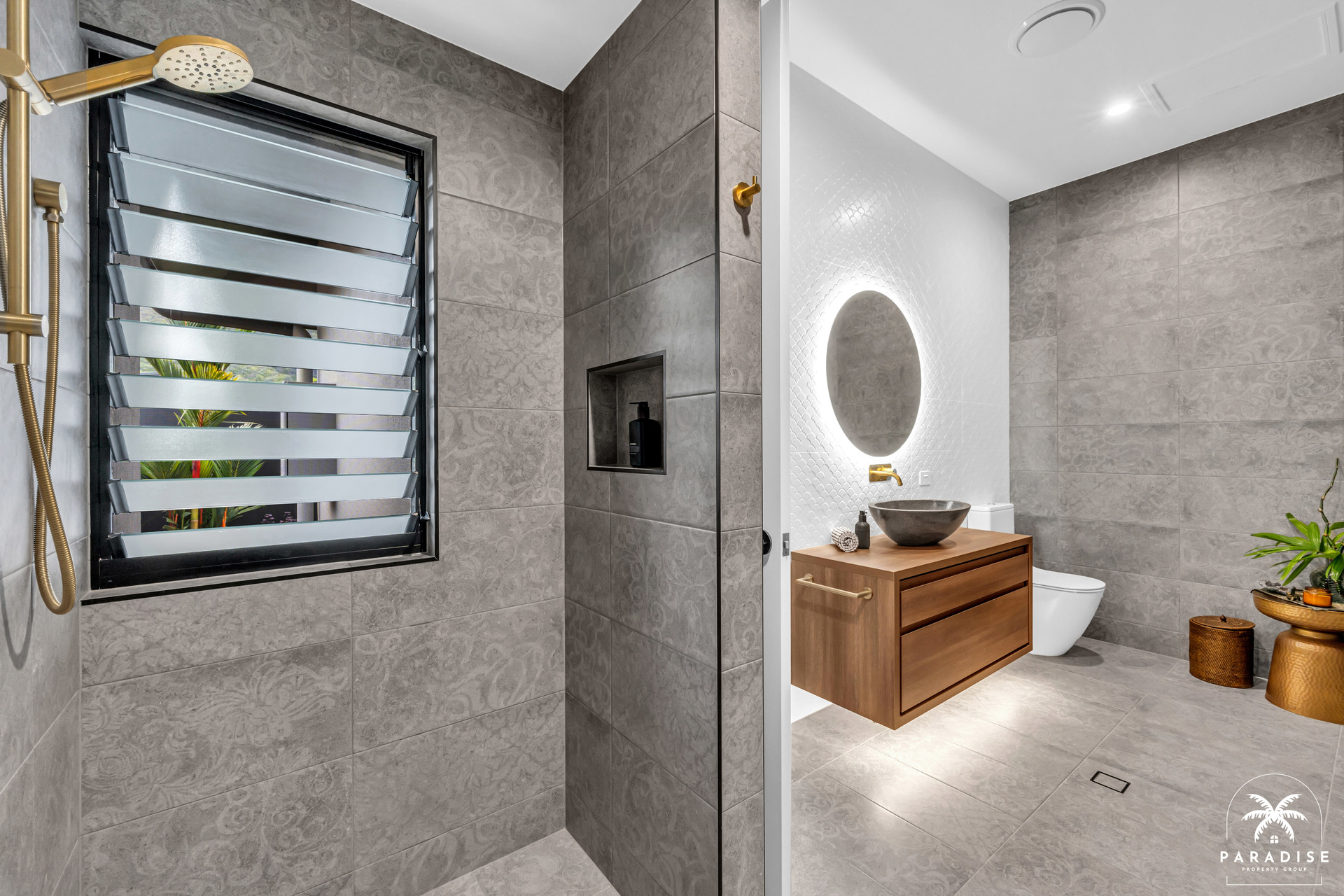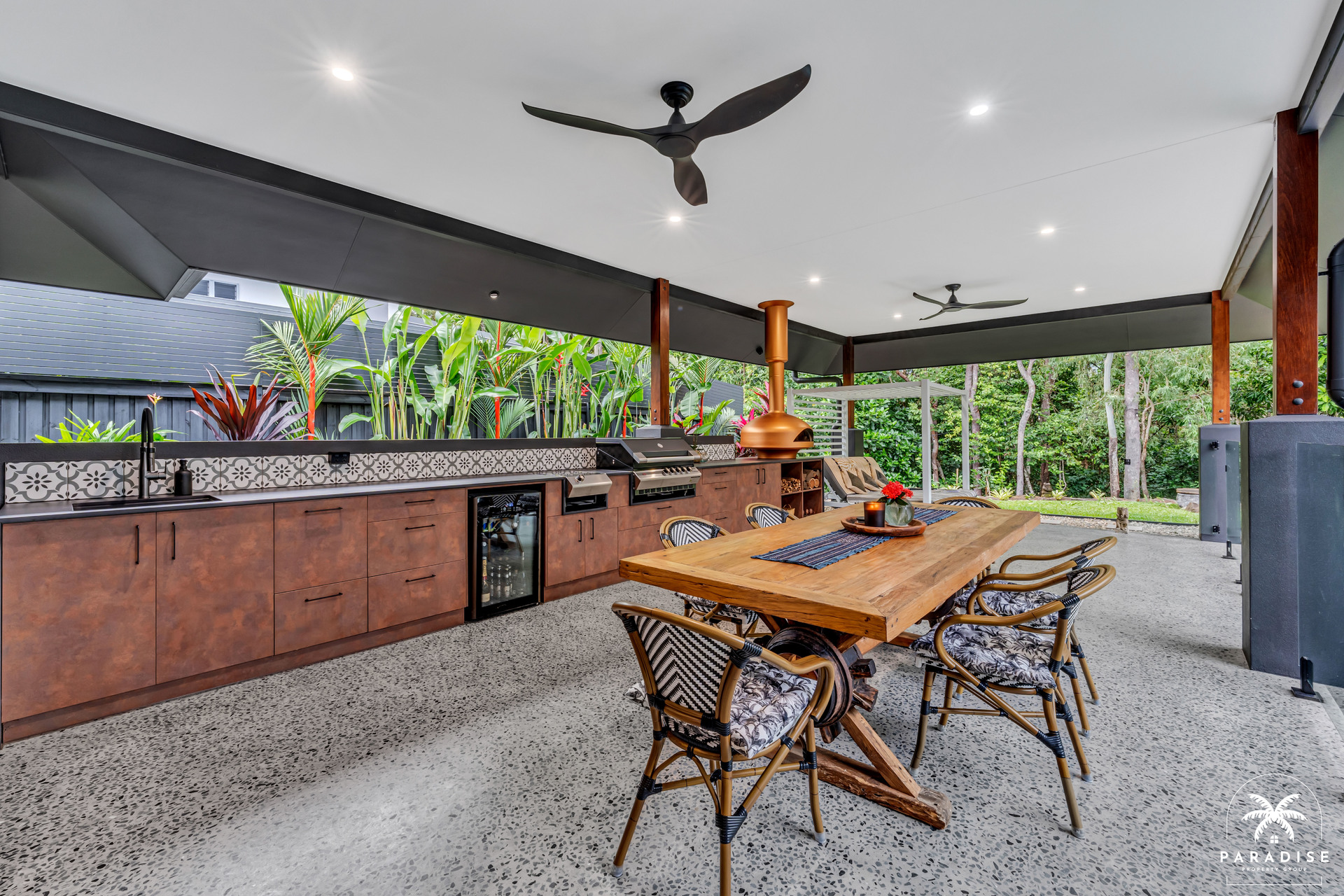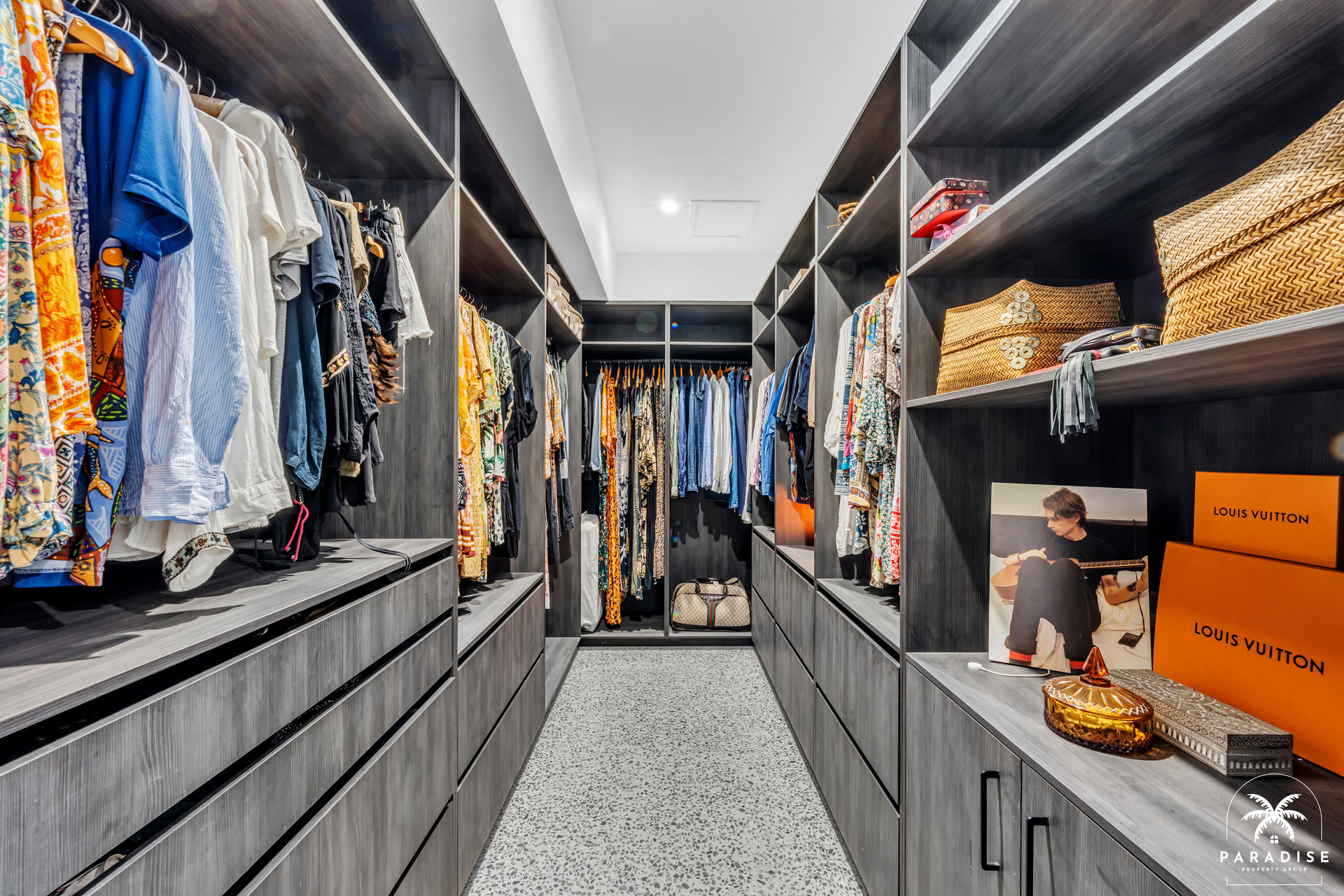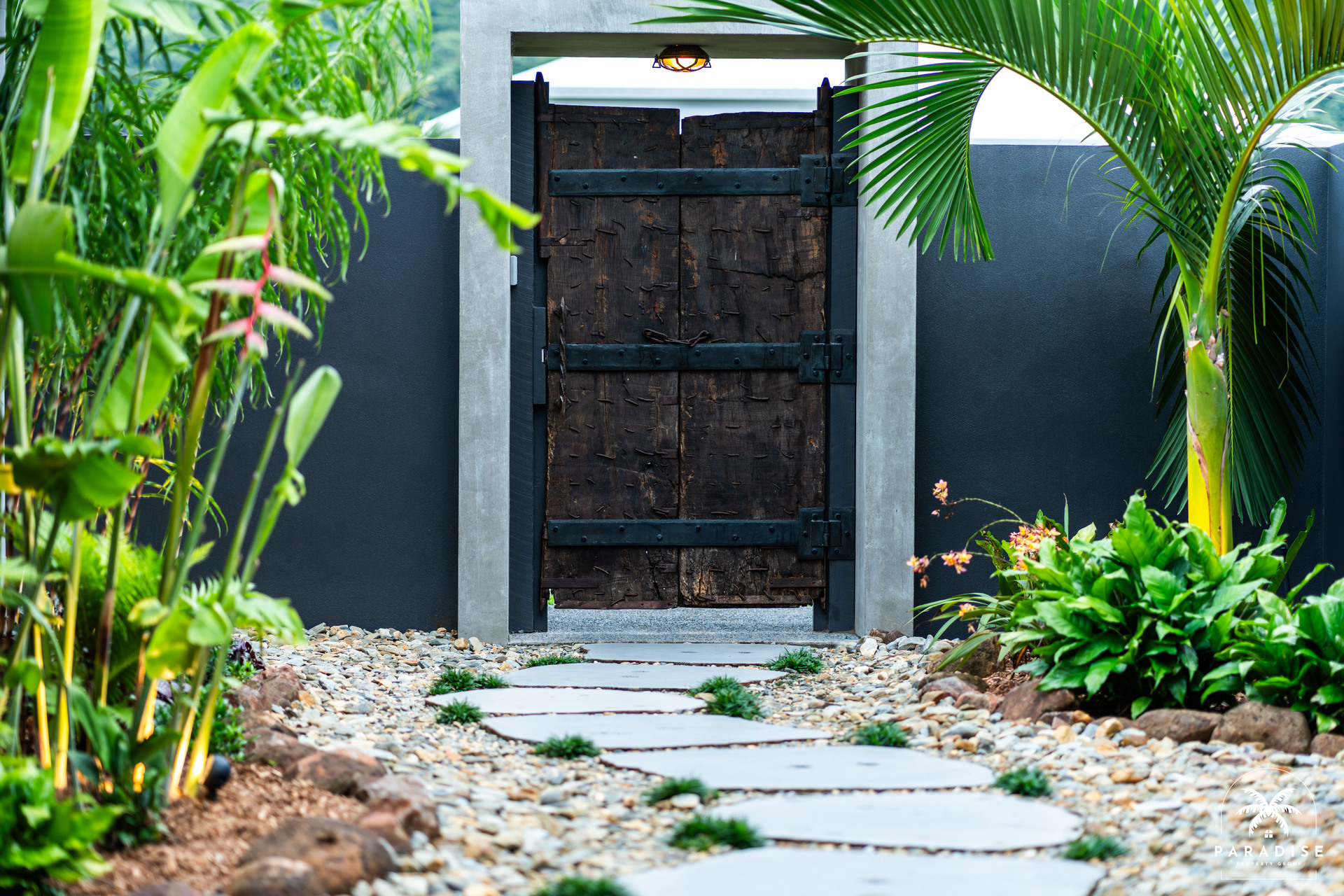 Luxury Boutique Retreat. - Cutting edge Architecture fused with traditional Balinese Design (Balay Vandyke). - Secure gatehouse guarded by Indonesian Warriors accessed through imported Antique Indian Temple Door, with electronic key access and guest intercom. - Private walled tropical courtyard with Asian-inspired gardens, water feature and winding oversized flagstone pavers that lead toward the bespoke New Guinea Rosewood Front Door. - Modern and Contemporary Layout with breathtaking scale. Boasting vaulted 5-meter-high ceilings, polished concrete floors, and walls of tinted glass, tropical louvres, and steel. - Cocktail, Whiskey & Wine Bar with integrated double fridge space, and Italian black marble and brass feature tiles. - Commercial Style Gourmet Kitchen with oversized Dekton stone benchtops, and floating steel shelves that lead through to professional butlers pantry. Complimented by high-end integrated, glass and Induction appliances. Endless rows of cabinetry, soft close drawers, spice drawers and storage, with feature window splash back and bonus Herb & Vegetable Garden (HIA Award-Winning Kitchen 2023). - Professional Outdoor Kitchen with 7metre long Dekton stone benchtops and cabinetry, integrated bar fridge, gas wok cooking, Ziegler and Brown self-cleaning 5 burner barbeque and Polito Giotto copper feature wood fire pizza oven. (HIA Award-Winning Outdoor Kitchen 2023). - Magnesium Resort Style Pool with rare Jade Green Glass Beaded pool light, spacious wood look ceramic tiled sun lounge area, outdoor rainwater shower, and unique dual stone water feature with integrated natural flame torches. - Luxurious Owners Suite overlooking and with direct access to the pool and secret garden. Polished Concrete Floors, high ceilings, deep walk-in dressing room, discreetly screened behind a wall of floor-to-ceiling sheer silk curtains to filter natural light. - Decadent Owners Bathroom with handmade Stone Bath, twin stone basins, wet room style double shower, hand-laid stone floors and tinted floor-to-ceiling picture window overlooking the rainforest. - Meditation Room overlooking private Zen Garden with manicured curved lawn, established Frangipani, and tranquil water feature. - An extensive Collection of handmade stone statues and unique water features have been sourced and imported from Indonesia surrounding the home and gardens. - Bespoke individual wrought iron and brass door furniture commissioned from local and overseas blacksmiths, with rare original handmade Naga Kanya door handles protecting the home. - Zoned Ducted Air conditioning with modern 3-blade aerodynamic energy-efficient ceiling fan, soft touch dimming LED lighting, remote controlled electric blinds, Crim Safe security and fly screens throughout. - Fully insulated energy efficient home, with high-grade 10kw Solar System installed complimented by oversized eaves to capture natural shade, reducing your carbon footprint whilst reducing costs. - Land size 1,255m2 with rainforest outlook, professionally landscaped, raised and retained with oversized boulders. Manicured lawns with low-maintenance tropical gardens all serviced by an automated watering system.