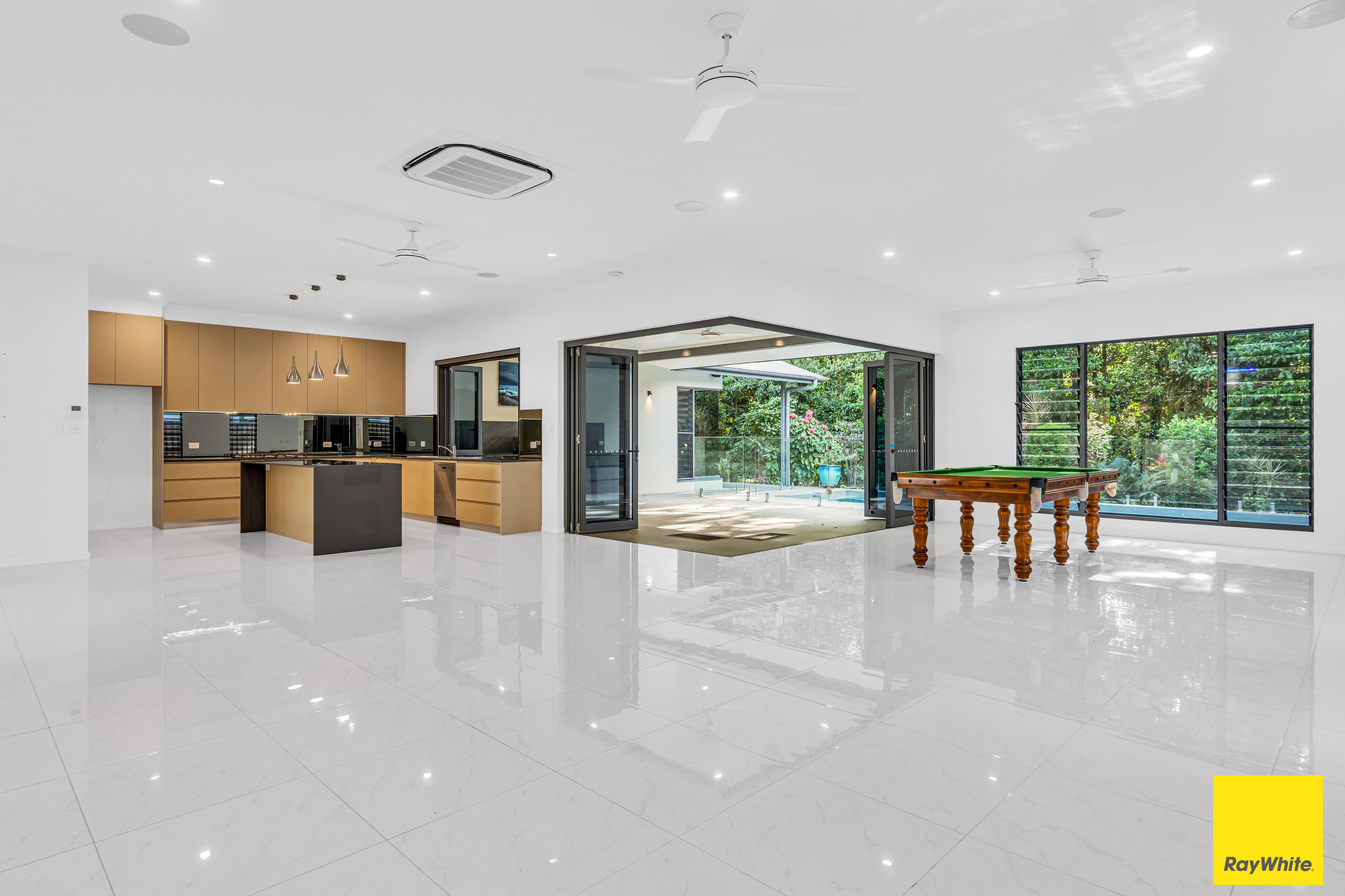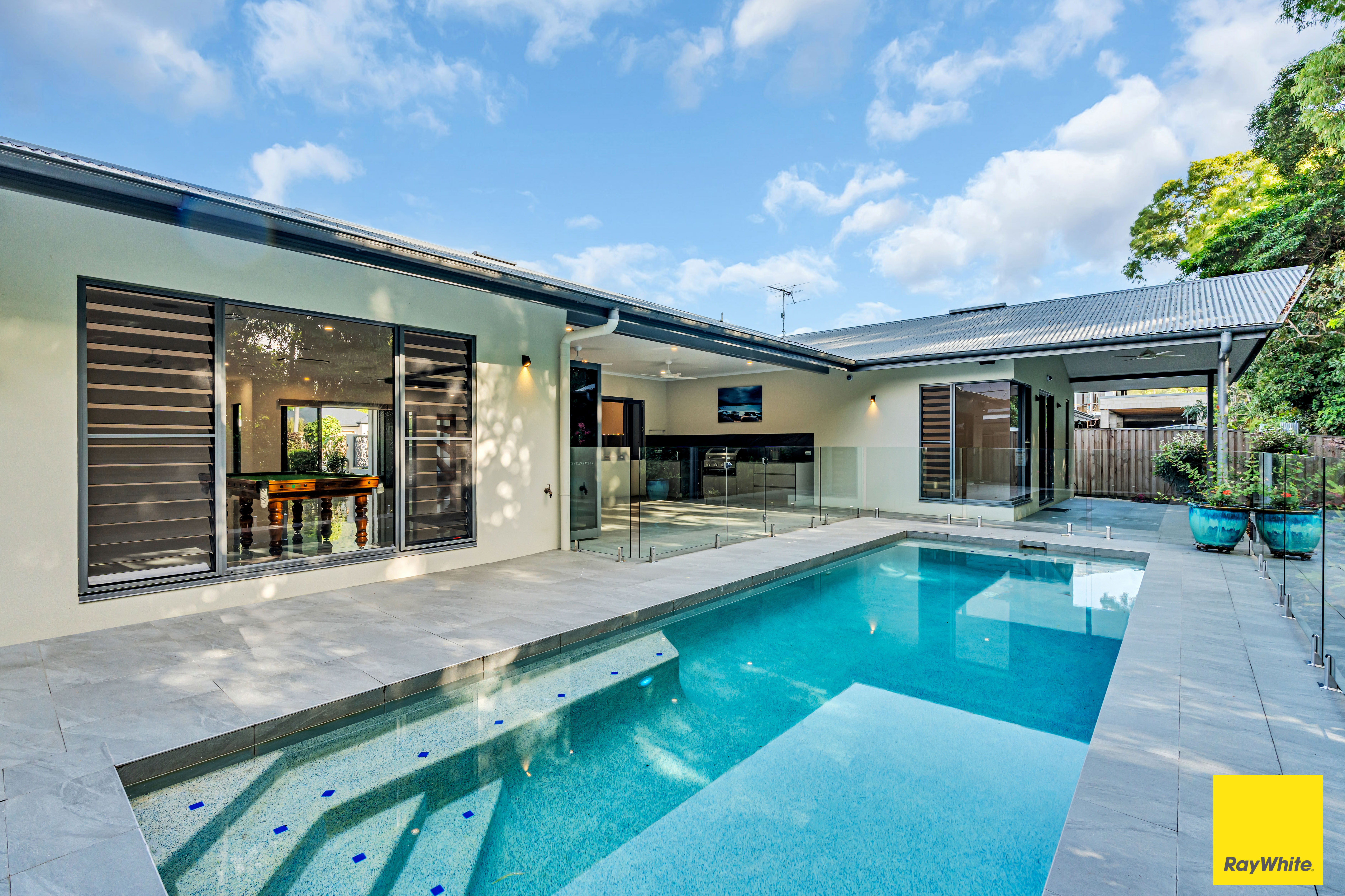 Enjoy the gentle easterly breezes and seamless indoor-outdoor living experience. Designed entirely on one level, this home offers unparalleled accessibility and comfort. Revel in soaring high ceilings, an expansive outdoor entertaining area with barbecue, and a sparkling salt water inground swimming pool. With the added allure of no rear neighbours, this rare gem won't stay on the market for long.
