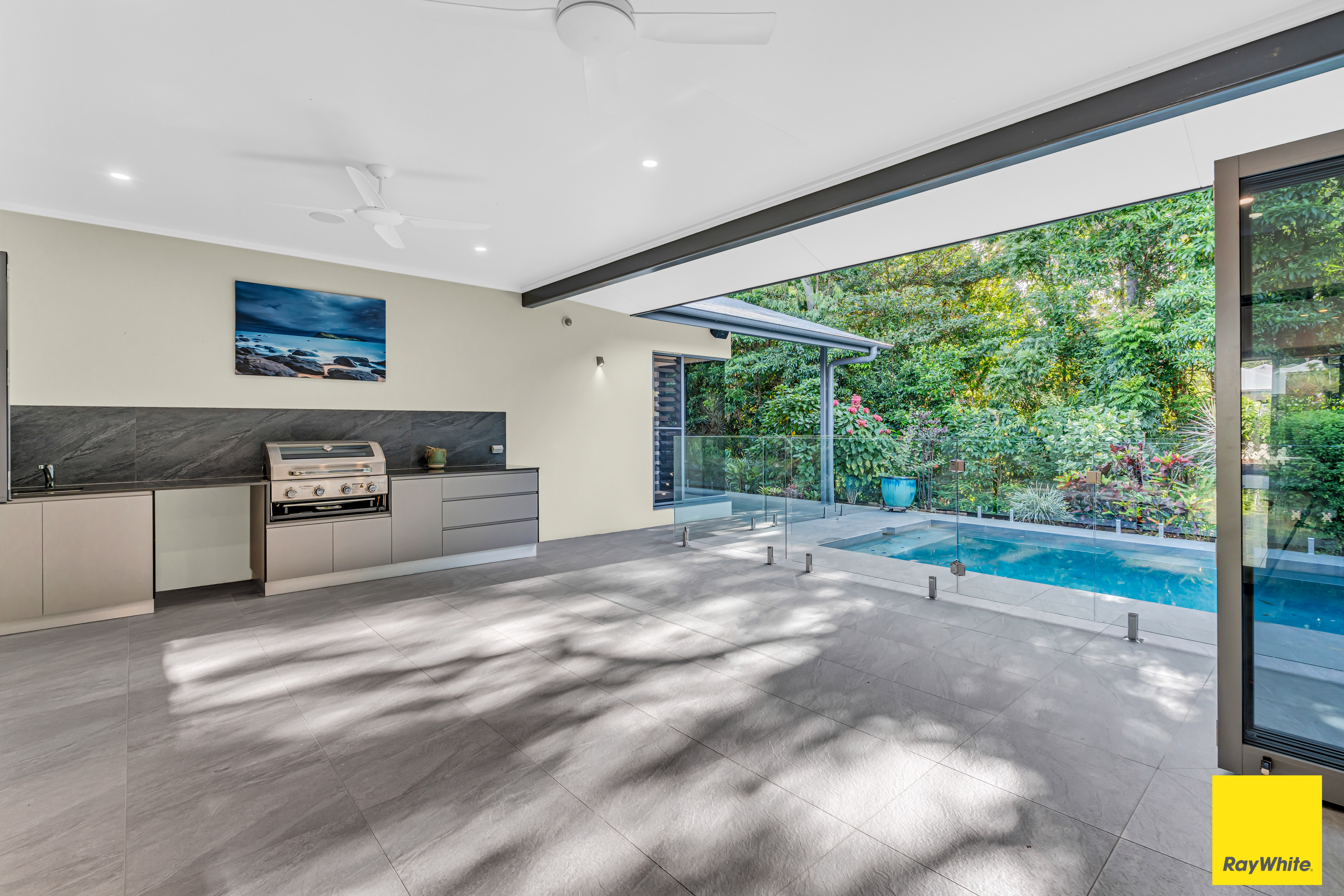 SEASIDE MASTERPIECE Nestled within the prestigious Argentea Estate in Palm Cove, this exquisite four-bedroom, three-bathroom residence epitomizes luxury costal living. Crafted by award-winning builders, East Build, every detail has been meticulously designed to embrace the tropical North Queensland climate. Designed entirely on one level, with no steps throughout, this home offers unparalleled accessibility and comfort and has sparred no cost in arriving at the masterpiece that it is today.