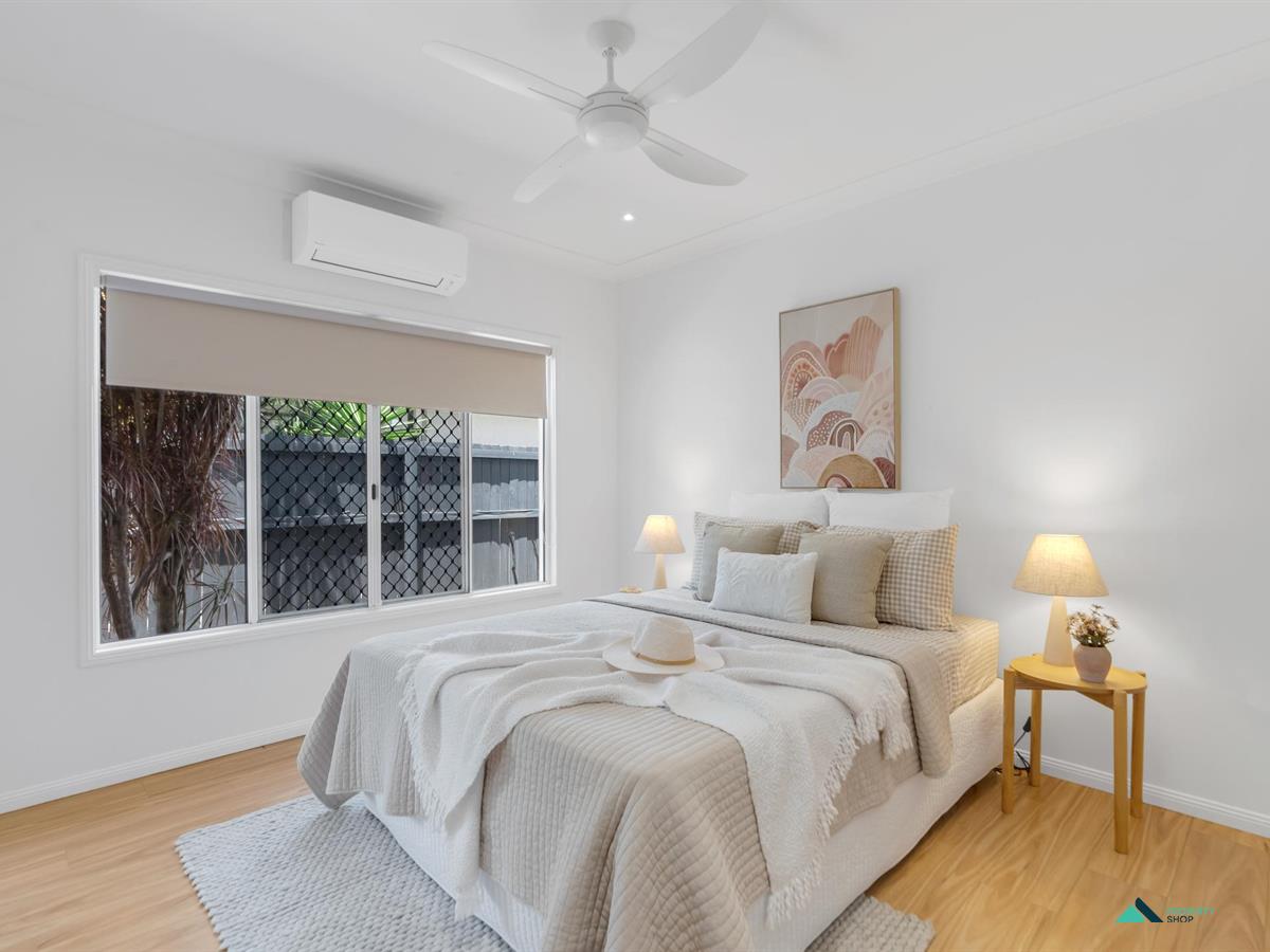 - 4 bedrooms, 2 bathrooms, 2 car garage - Positioned on a 450m² block in a quiet and desirable location within Trinity Park - Open-plan kitchen and dining area with a separate expansive living room - Kitchen at the rear, featuring an island bench and ample storage - Master suite located at the back of the home, complete with a walk-in robe and ensuite - Spacious guest bedrooms, all with built-in wardrobes - Effortless transition between indoor and outdoor living to the alfresco entertaining area - Large, low-maintenance yard ideal for children, pets or room for a pool! - Air conditioning to all 4 bedrooms and living areas - 2 Newly installed Air-conditioners