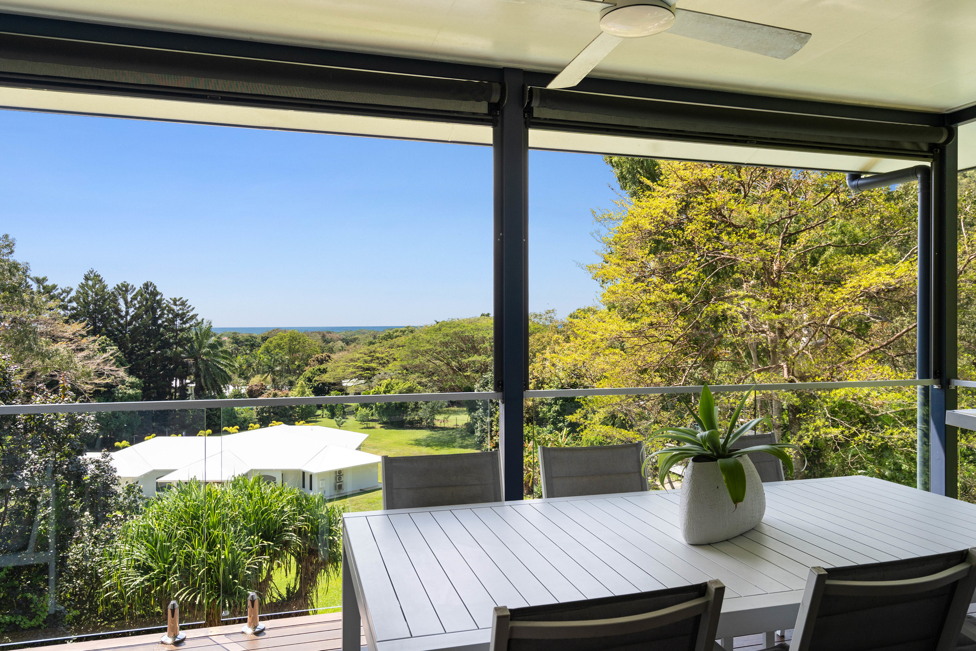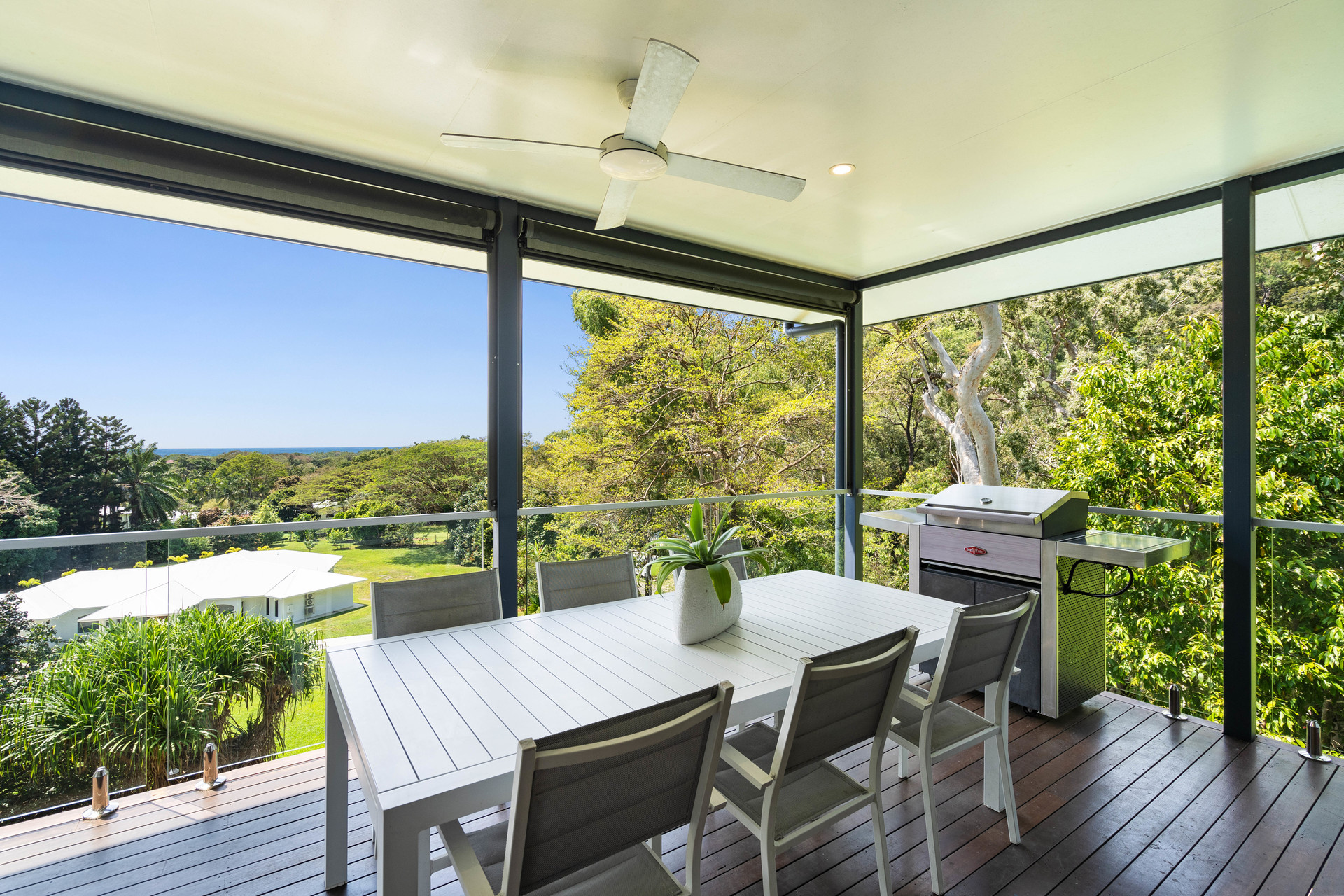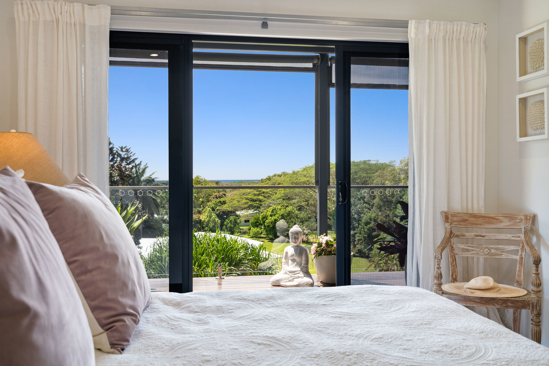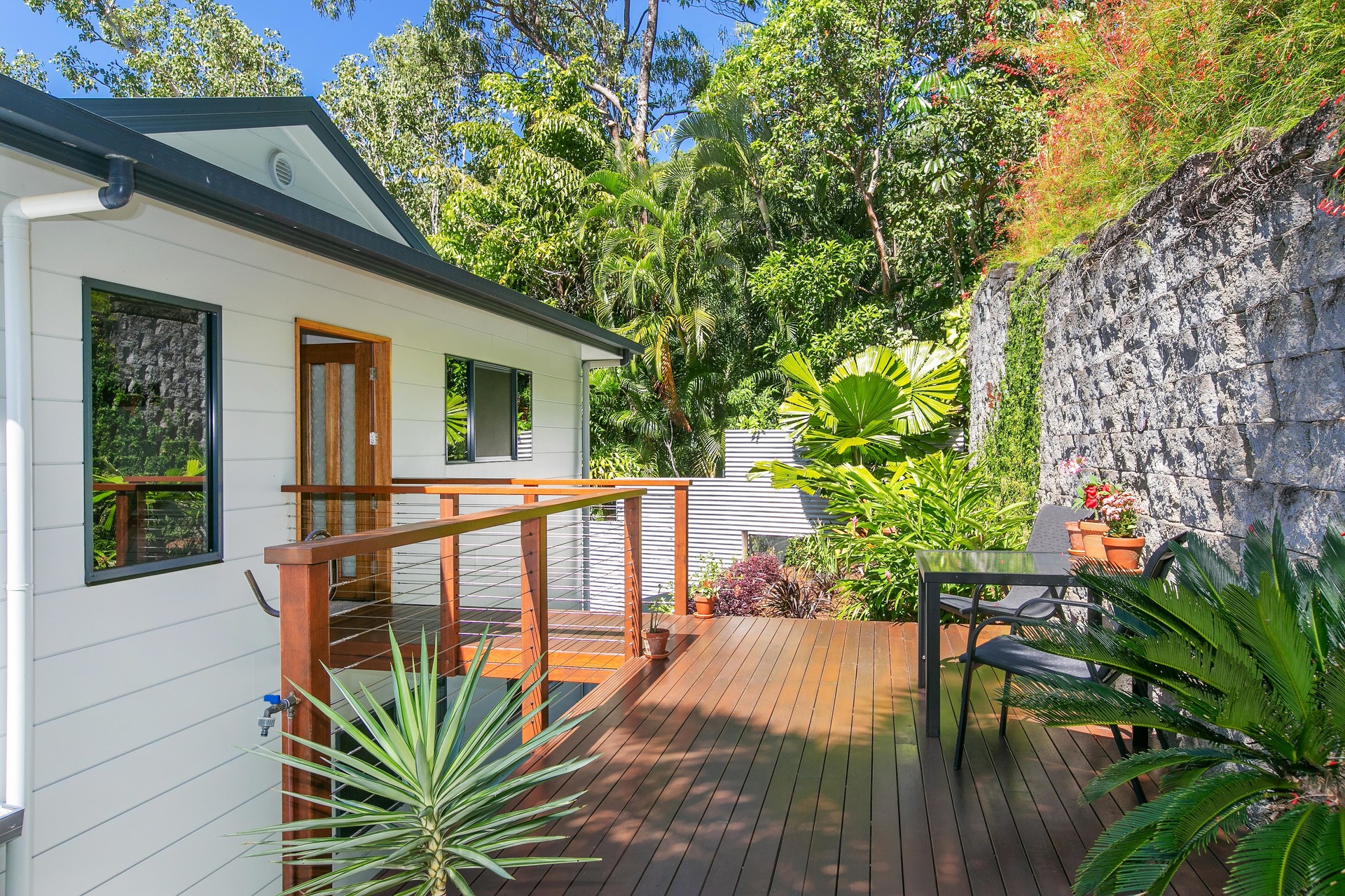 - 2,729m2 elevated block with useable land, minutes from the beach - Completely re-built in 2017 and presenting as new - Open-plan interiors with high ceilings and magnificent views - High-quality construction, elegant decor and polished timber floors - Superb indoor/outdoor living with two expansive balconies - Entertainer's kitchen with stone benches and SMEG appliances - Main bedroom with WIR, ensuite, and direct access to a private balcony - Delightful pool in sunny natural setting with ocean views - 6.6kw solar system and wired for generator - 42m2 shed, 2-bay carport and ample room for boat or campervan - Charming entry via a private bridge, framed by lush, landscaped gardens - Premium location at the end of a quiet cul-de-sac, offering absolute privacy