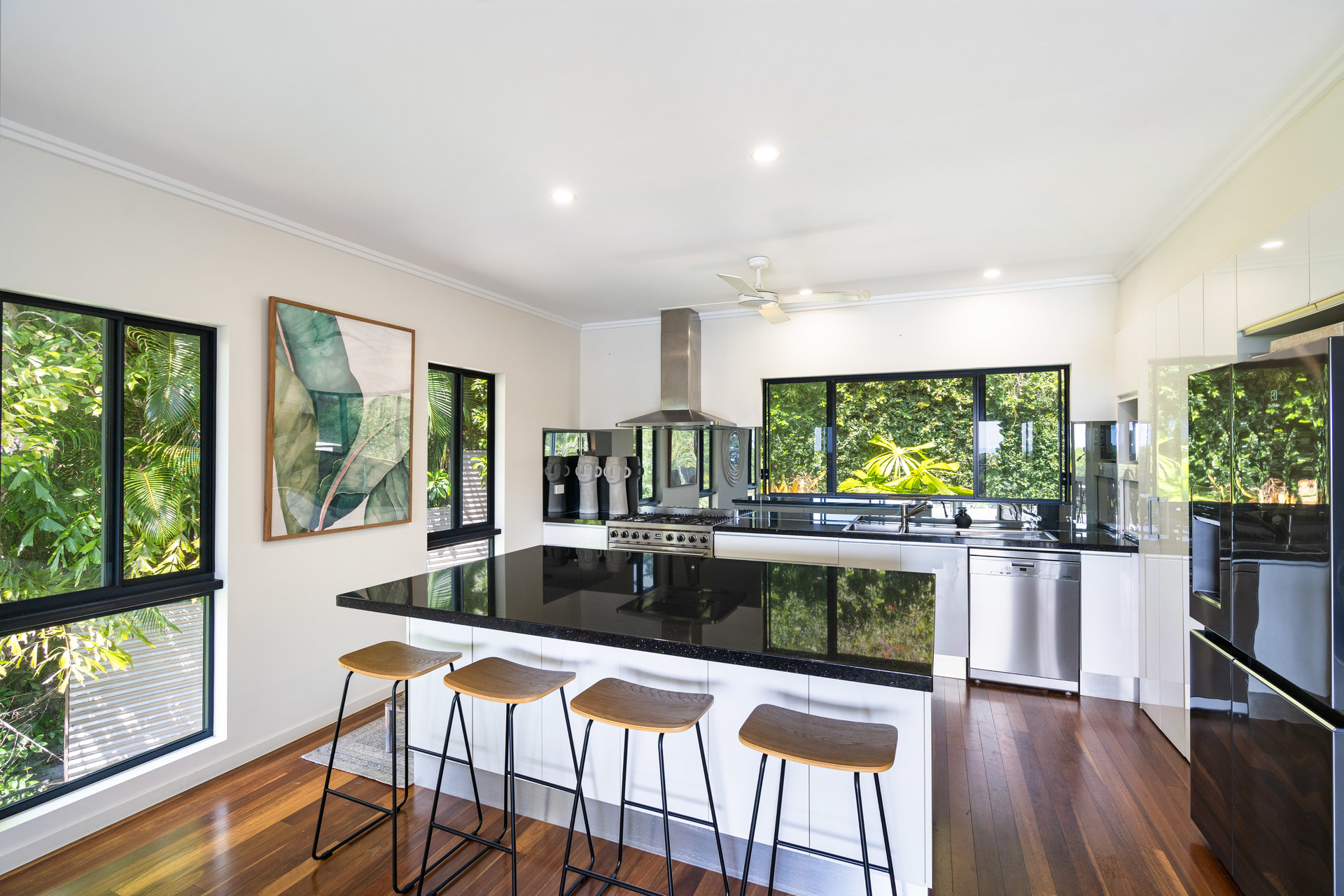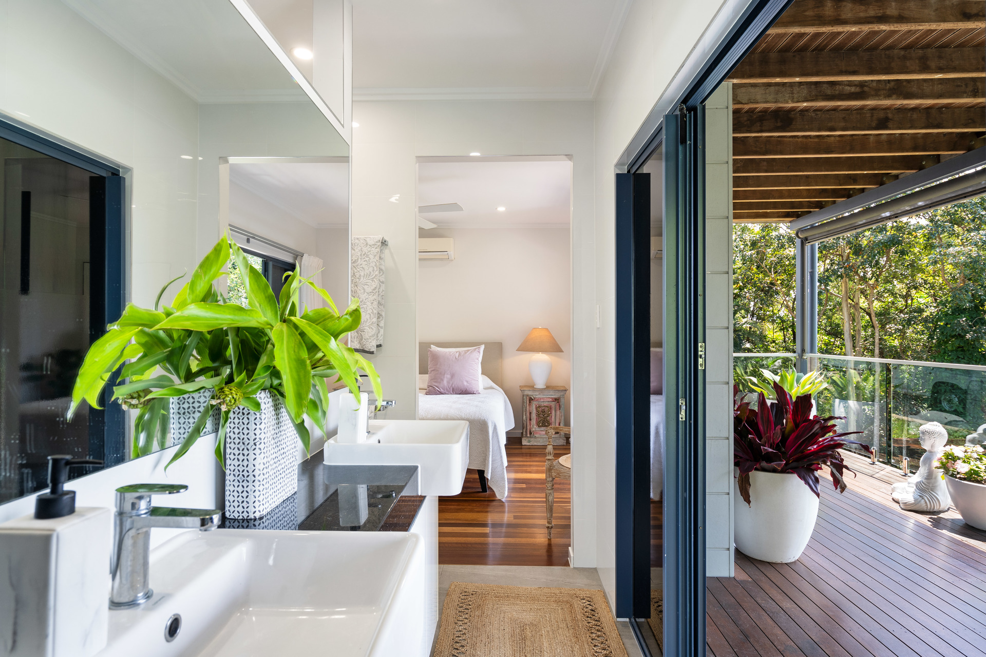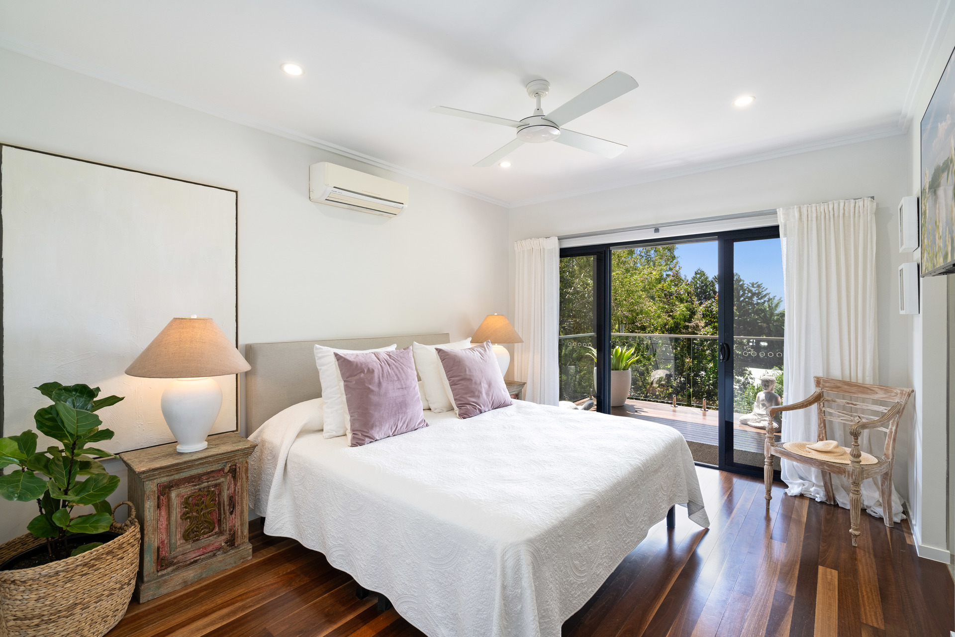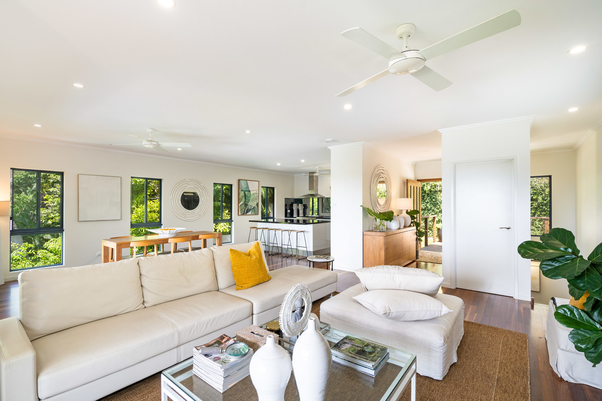 - 2,729m2 elevated block with useable land, minutes from the beach - Completely re-built in 2017 and presenting as new - Open-plan interiors with high ceilings and magnificent views - High-quality construction, elegant decor and polished timber floors - Superb indoor/outdoor living with two expansive balconies - Entertainer's kitchen with stone benches and SMEG appliances - Main bedroom with WIR, ensuite, and direct access to a private balcony - Delightful pool in sunny natural setting with ocean views - 6.6kw solar system and wired for generator - 42m2 shed, 2-bay carport and ample room for boat or campervan - Charming entry via a private bridge, framed by lush, landscaped gardens - Premium location at the end of a quiet cul-de-sac, offering absolute privacy