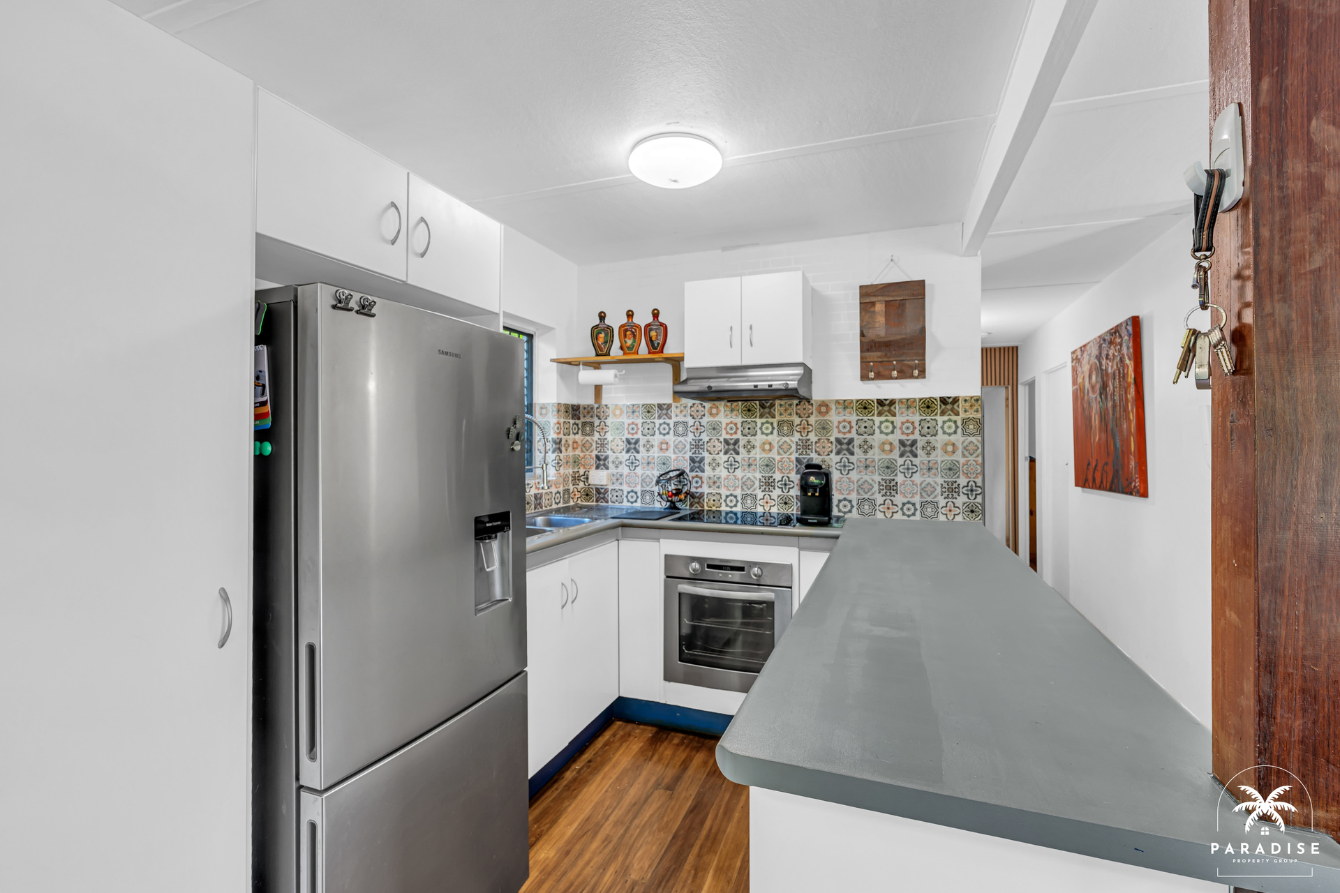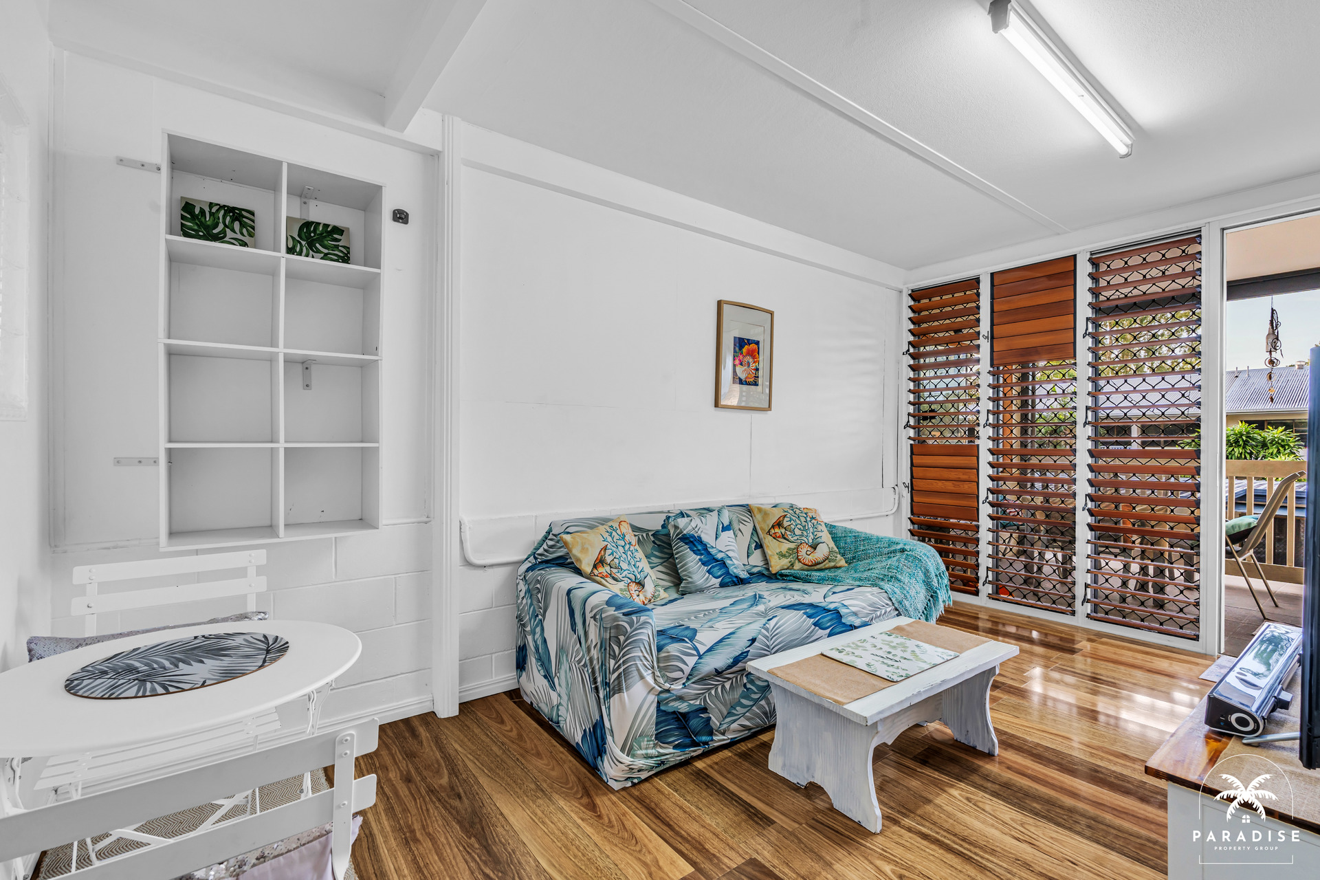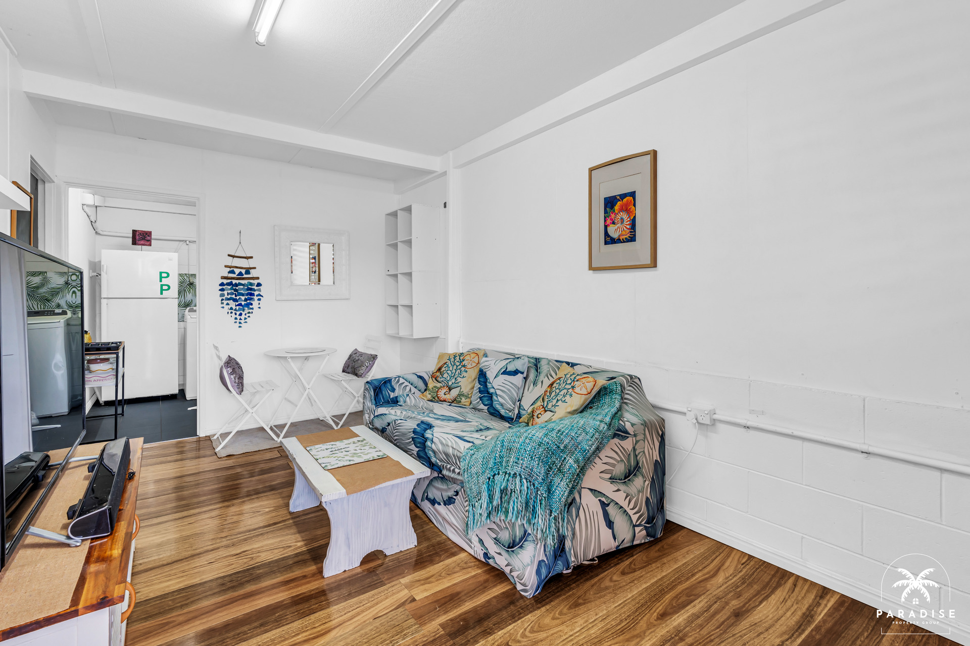 STAND OUT FEATURES -Large-sized apartment encompassing the whole top floor. -Great location with only 50 Metres walking distance to the beach, close to all shops, restaurants, cafes and more. -A large, newly tiled 15m x 3m balcony at the front, perfect for sundowners, and a newly tiled balcony at the back of the property, great for morning breakfast with an ocean view. -U-shaped kitchen with new backsplash, electric oven, and stove and plenty of bench space. -Unique layout, with large living spaces and 3 spacious bedrooms with wooden floors throughout. -The third bedroom has been transformed into a studio with living, room, kitchenette and additional storage where you can choose to lock up internally or leave open which increases revenue whilst living on-site, or for separation from family and guests. -Beautifully renovated new bathroom with porcelain tiles, single vanity with large wooden cabinetry and separate toilet. -10.5 kW solar system on the roofperfect for reducing costs and considering your ecological footprint. -Timber floors, Timber Louvres, Fly and Security Screens, Split Airconditioning in most rooms. -On-site amenities include a large pool with a sun lounge area, workshop, and additional storage. -Property is sold furnished.