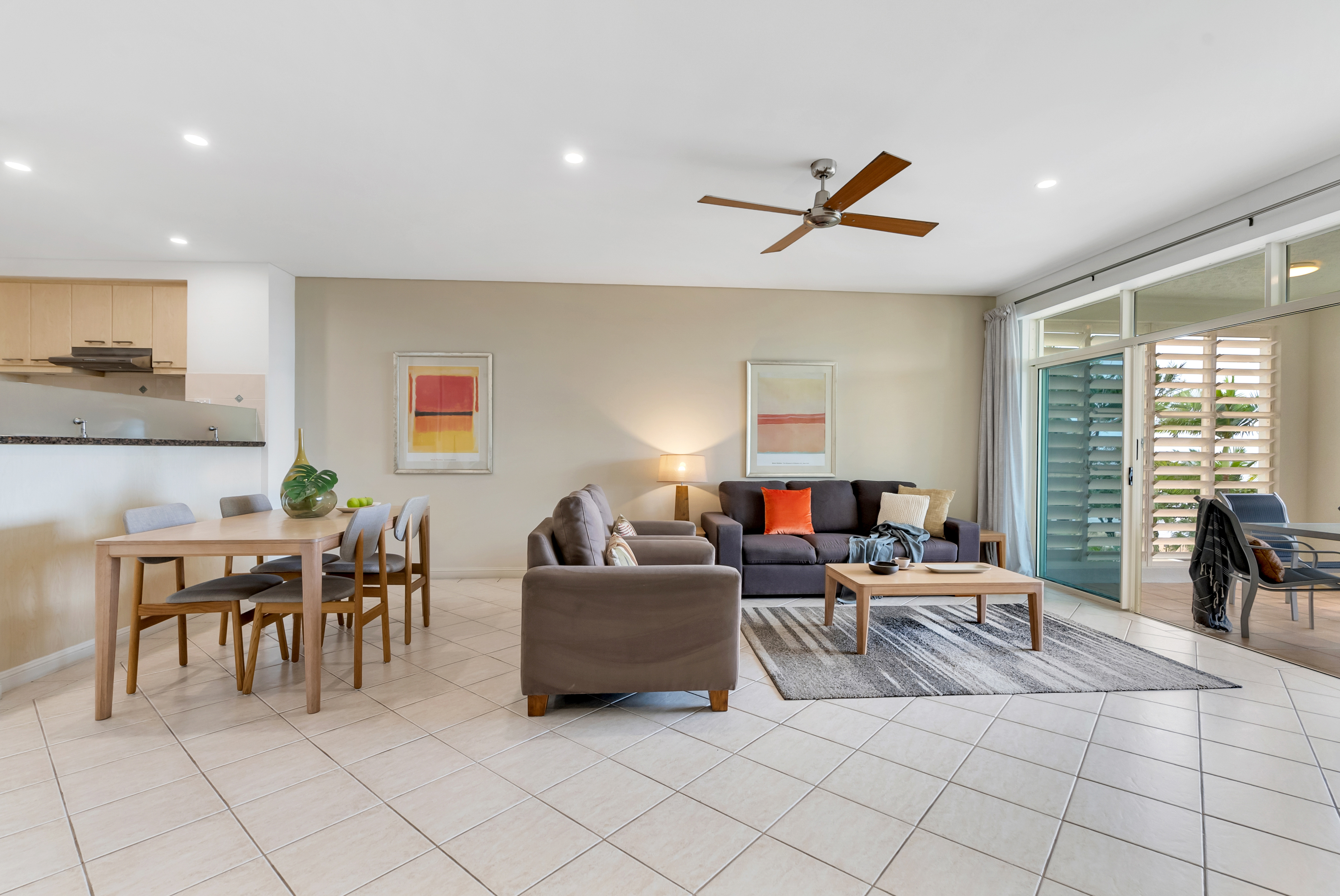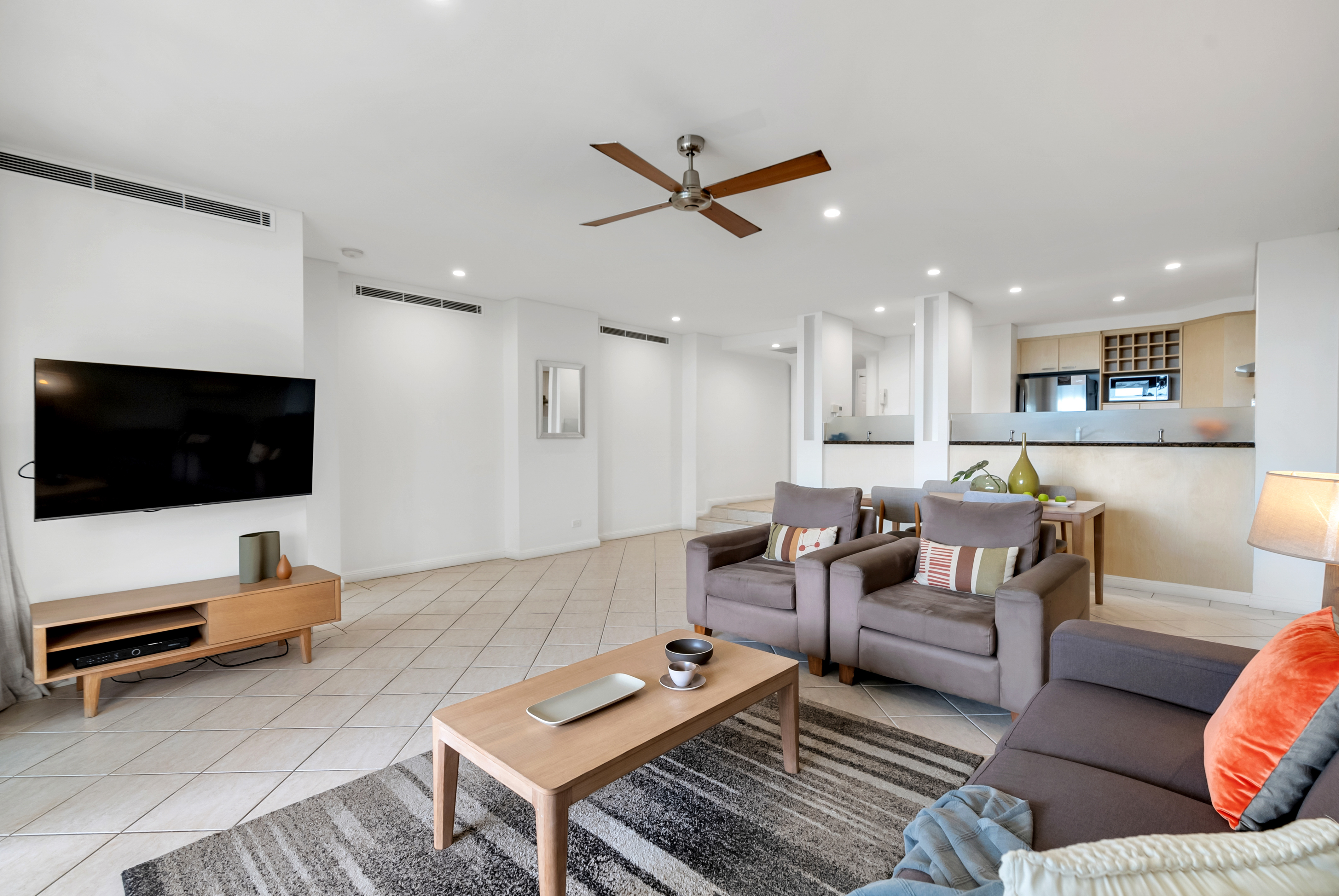 * Spacious open plan living with ambient breezes