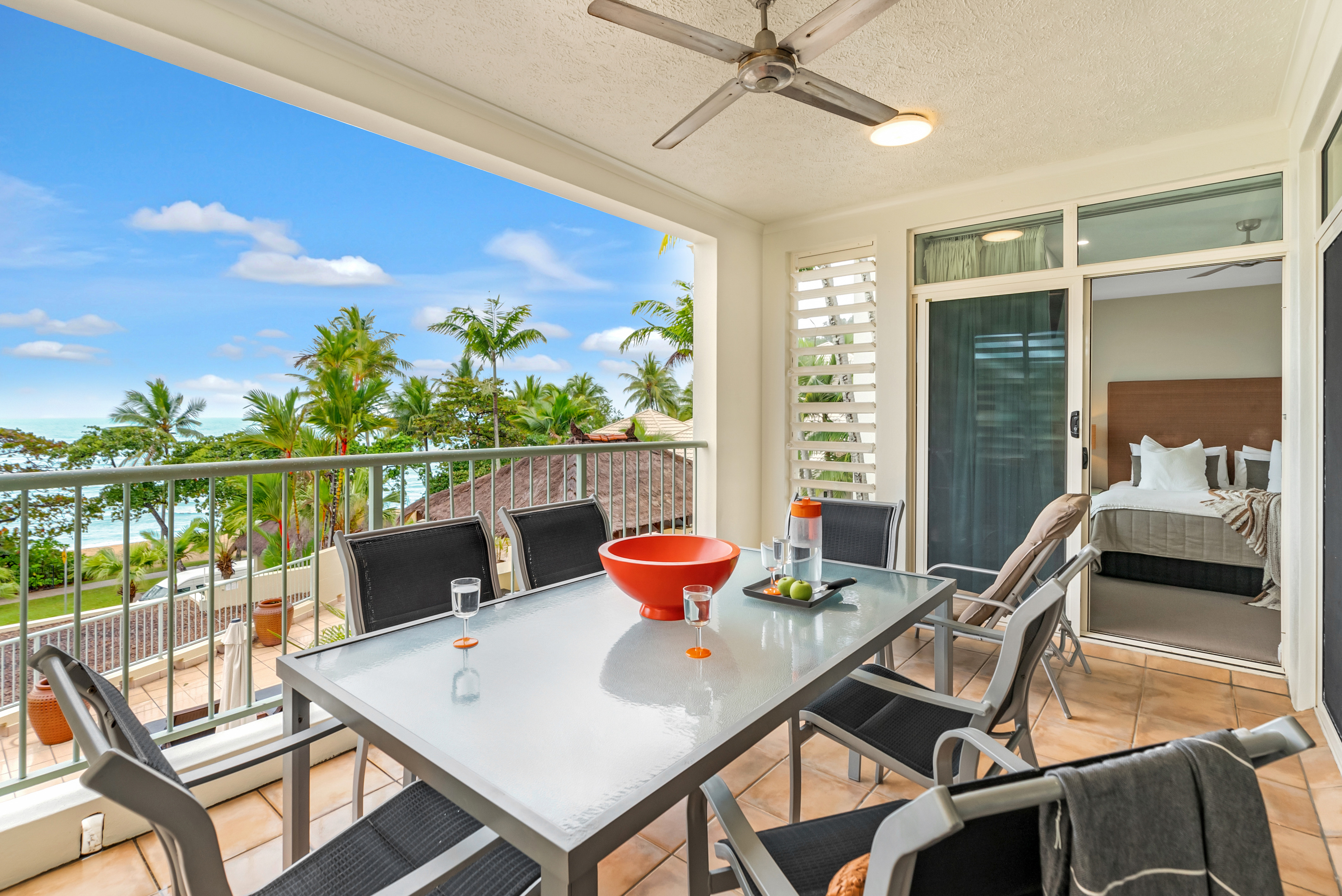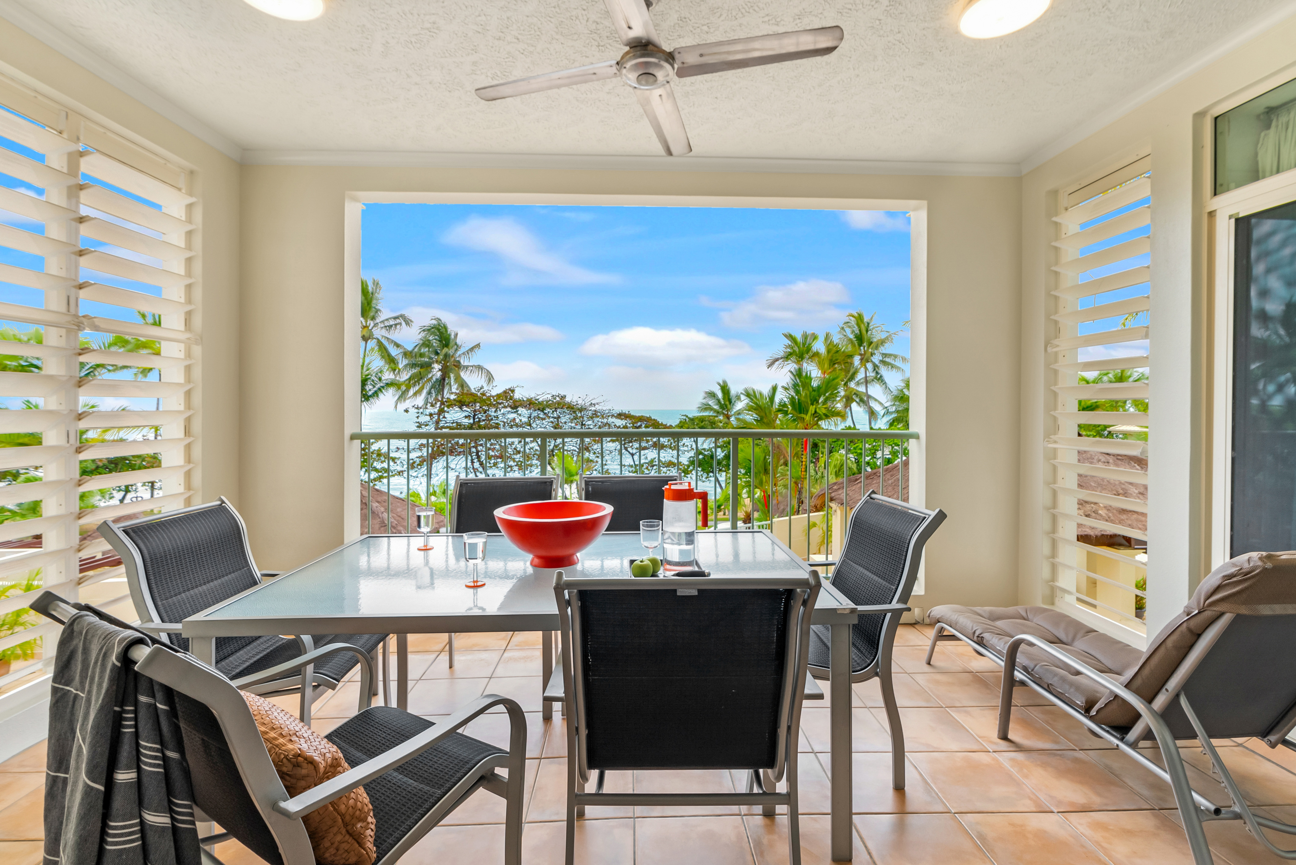 APARTMENT WITH PANORAMIC OCEAN VIEWS Commanding stunning views of the Coral Sea and Cairns favourite beach, is this immaculately presented 2nd floor apartment. In its premier elevated position, within the award winning Sea Change Beachfront Apartments, it's just footsteps from the golden sands of the beach. This two bedroom apartment is one of the most spacious apartments you will find in Trinity Beach. It has uninterrupted views of the ocean & beach and is well positioned on the Esplanade so it's a short stroll to restaurants, cafes, and shops. If you are looking for an idyllic lifestyle location where you can sit on your generous balcony and watch amazing sunrises and mesmerising full moon nights, you will love living here. Alternatively, you may be looking for a winter getaway that can also produce an impressive income for the rest of the year - the choice is all yours. Last year the apartment grossed $98,000 in income !