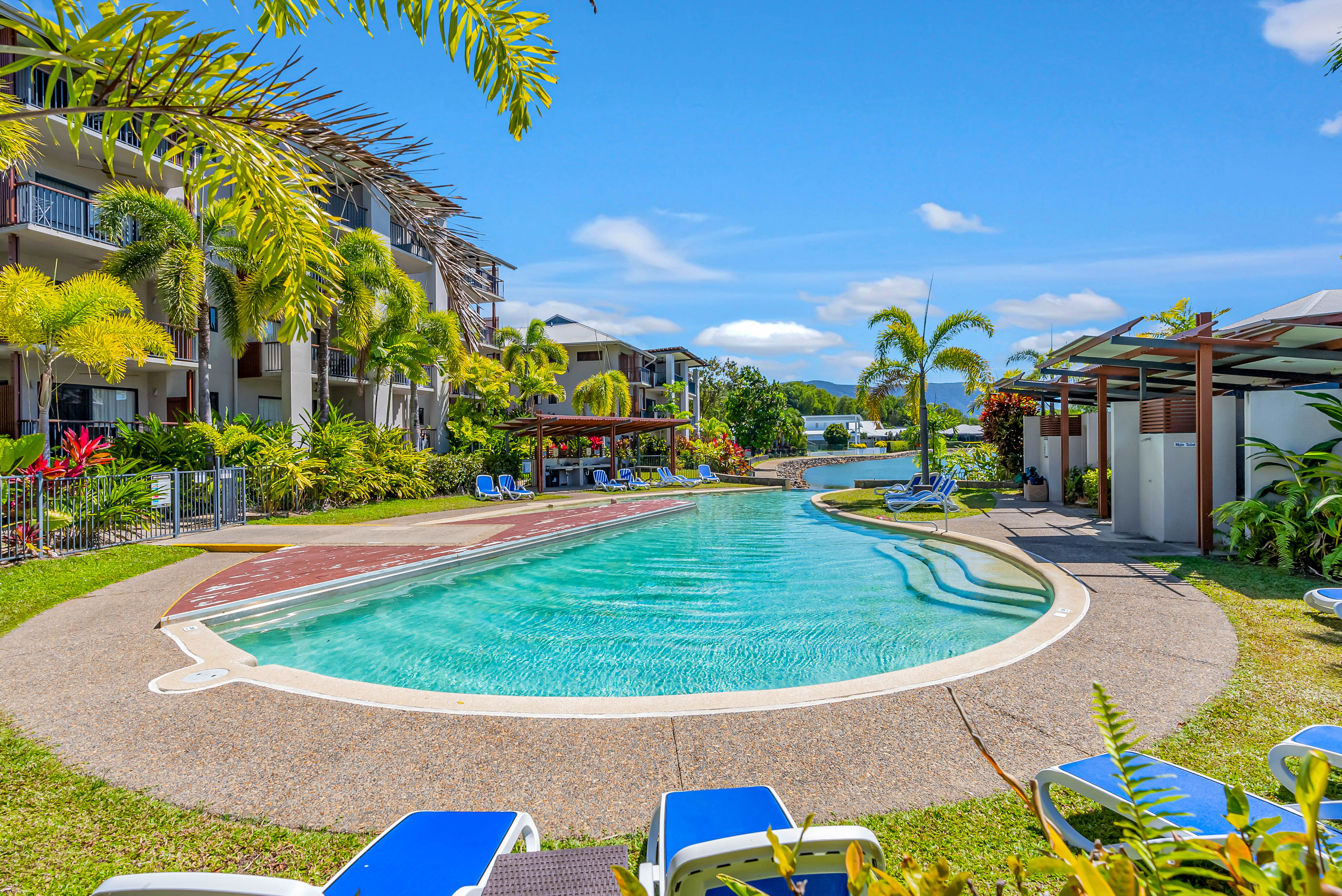 The apartment exudes a feeling of luxury and relaxed living, set amongst immaculately manicured tropical gardens, the huge lagoon and the backdrop of the Macalister Range. Trinity Beach is displaying all of the very best FNQ way of life with these apartments, offering, water views, a couple of minutes walk to the beach, Rainforest walks and nearby fishing from the Jetty at Palm Cove. Should you ever find a reason to leave, Cairns Domestic and International airport is only a short 25 min drive.