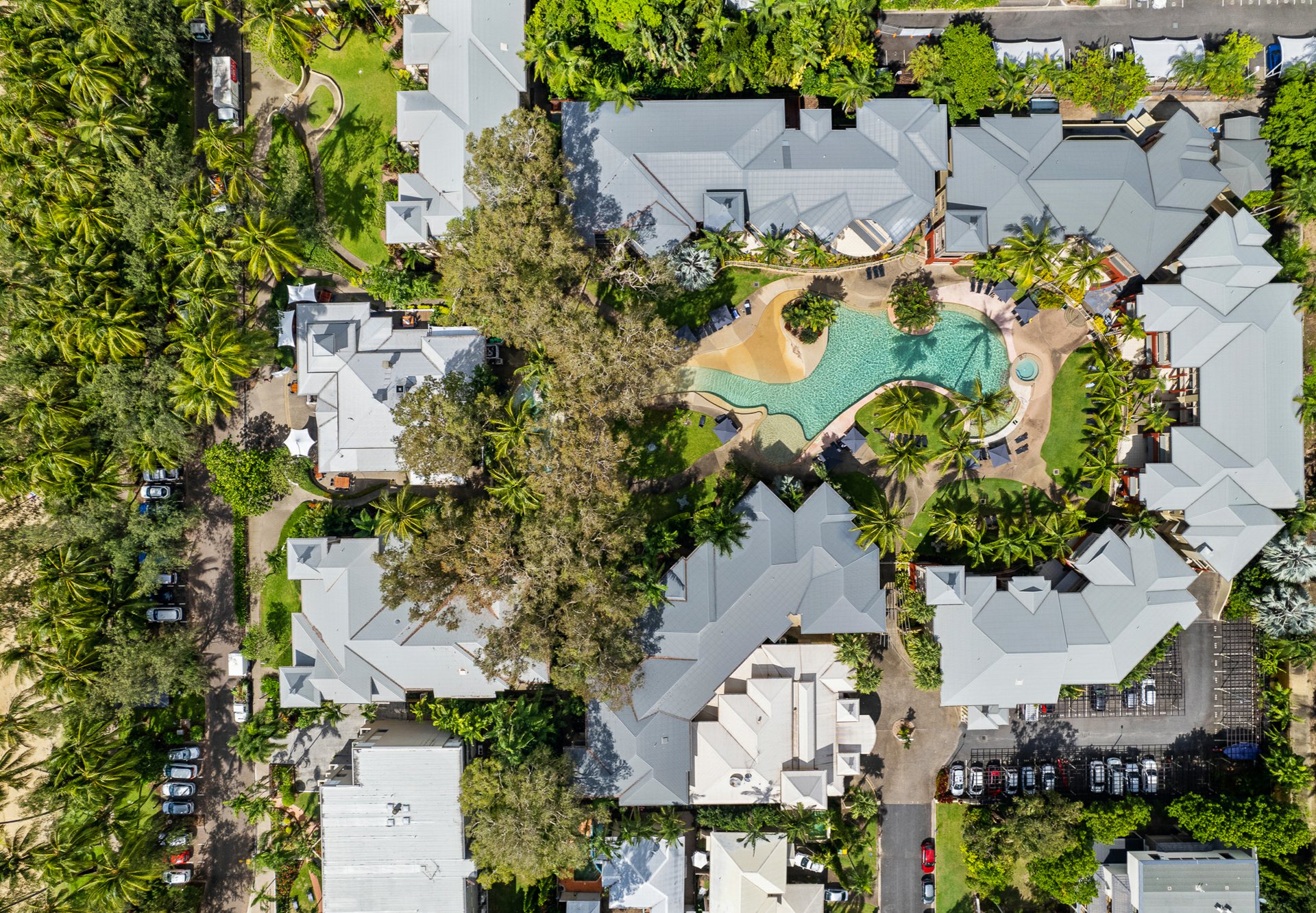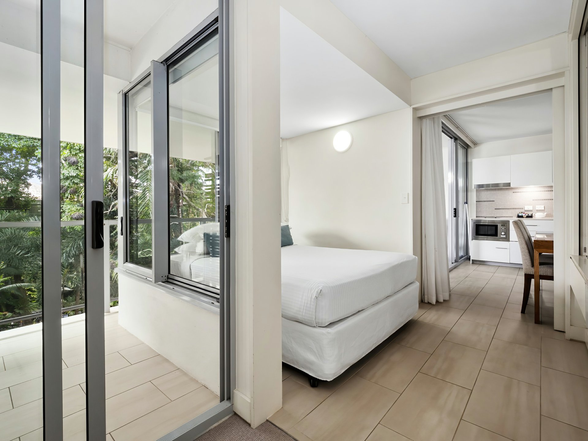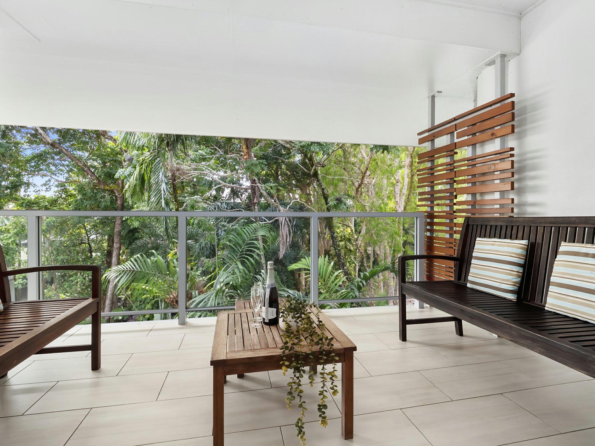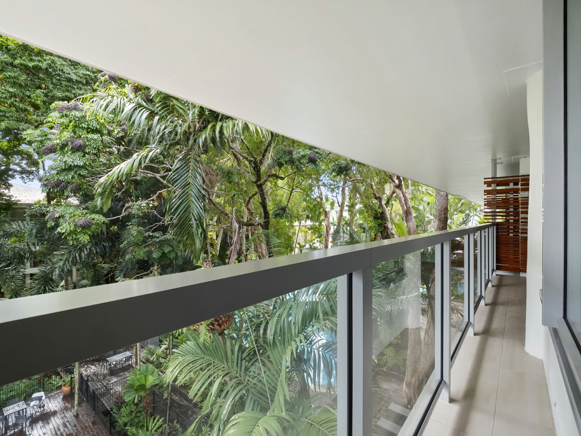 concept living area creates a seamless flow between all spaces. Enjoy meals or unwind on the balcony while gazing over the lush tropical gardens and the