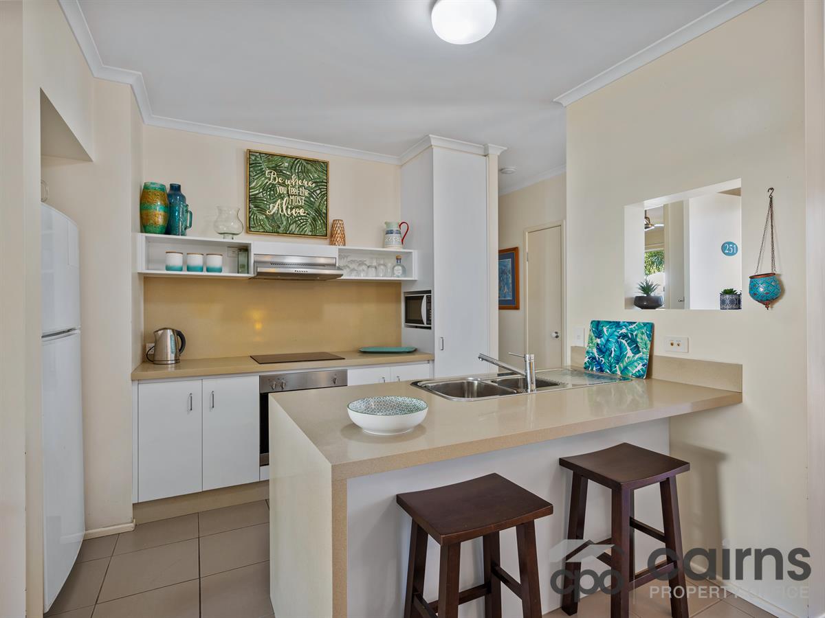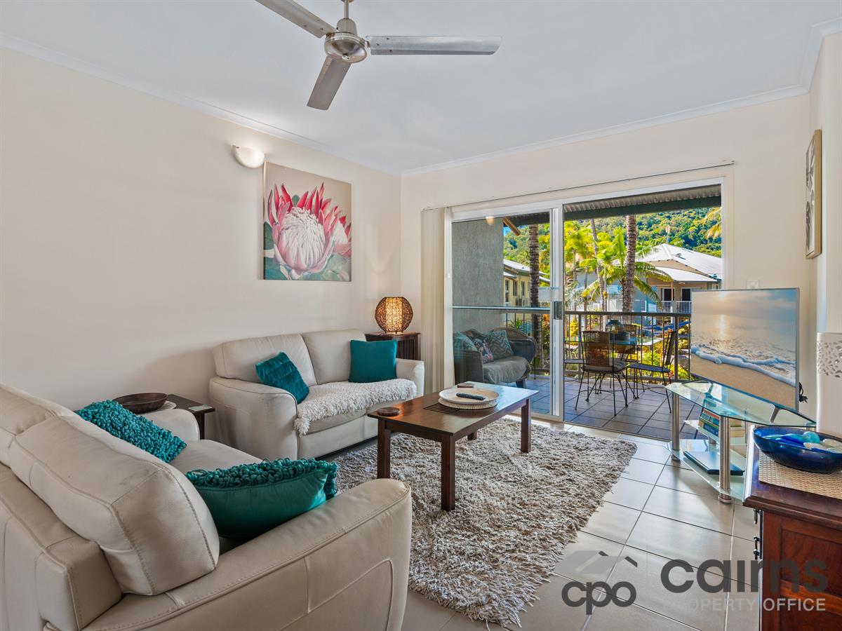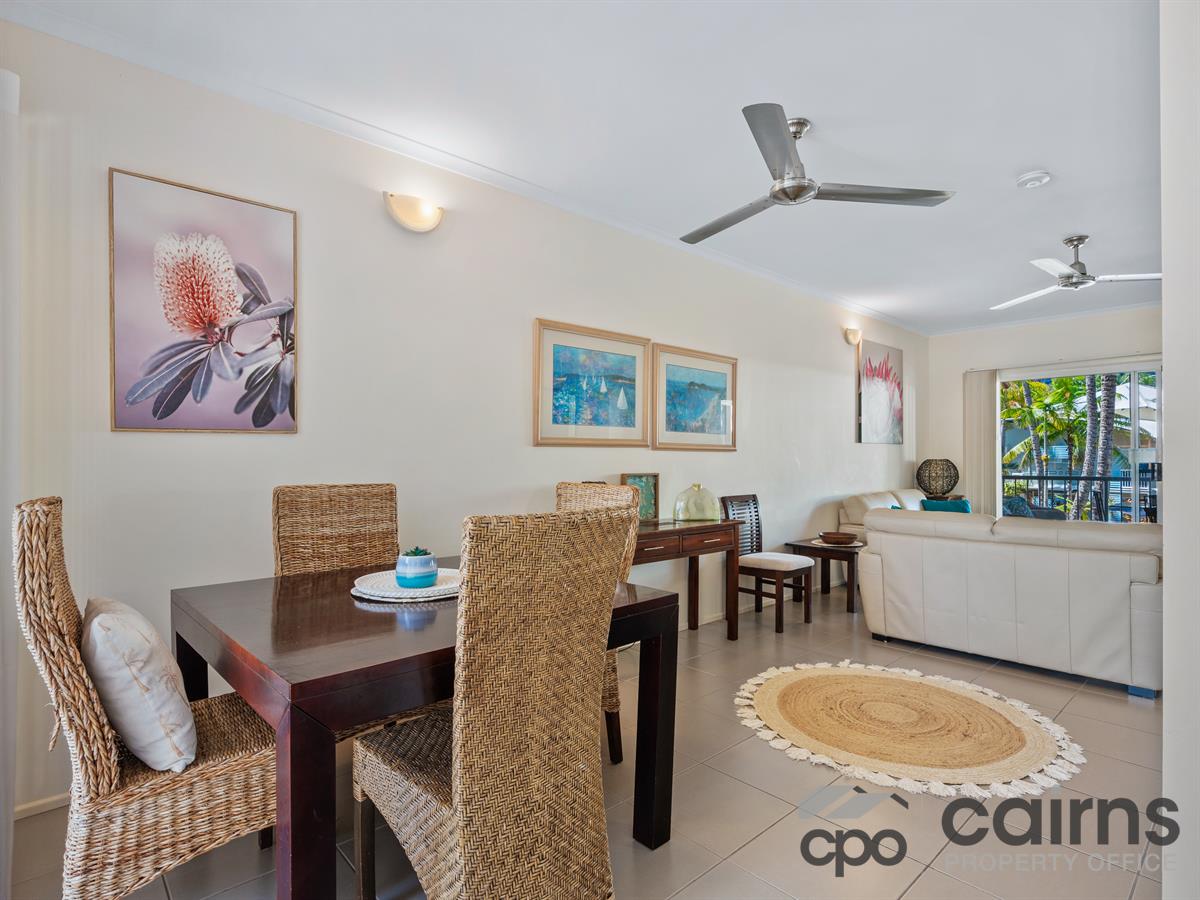 area which captures the beautiful breezes through the double sliding doors. The outdoor patio over looks the stunning lagoon pool. Two generous sized bedrooms with air conditioning, the master with a large shower in the ensuite and built in robe. Embrace the FNQ lifestyle or seize the opportunity for a fantastic investment. Excellent managers who can holiday or permanently