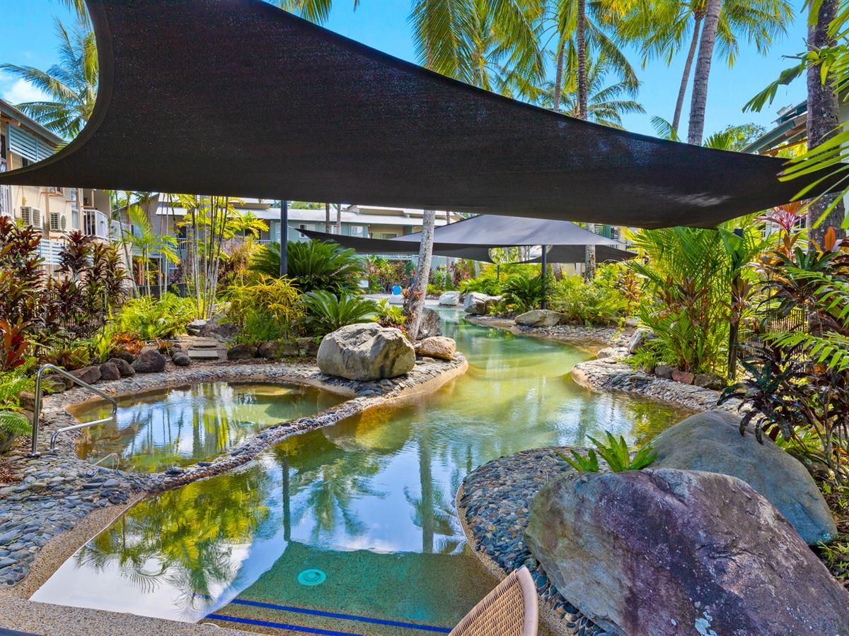 Live in a tropical paradise every day at Marlin Cove Resort, located just five minutes away from beautiful Trinity Beach, the shops, cafes, and restaurants Surrounded by 10 acres of well maintained