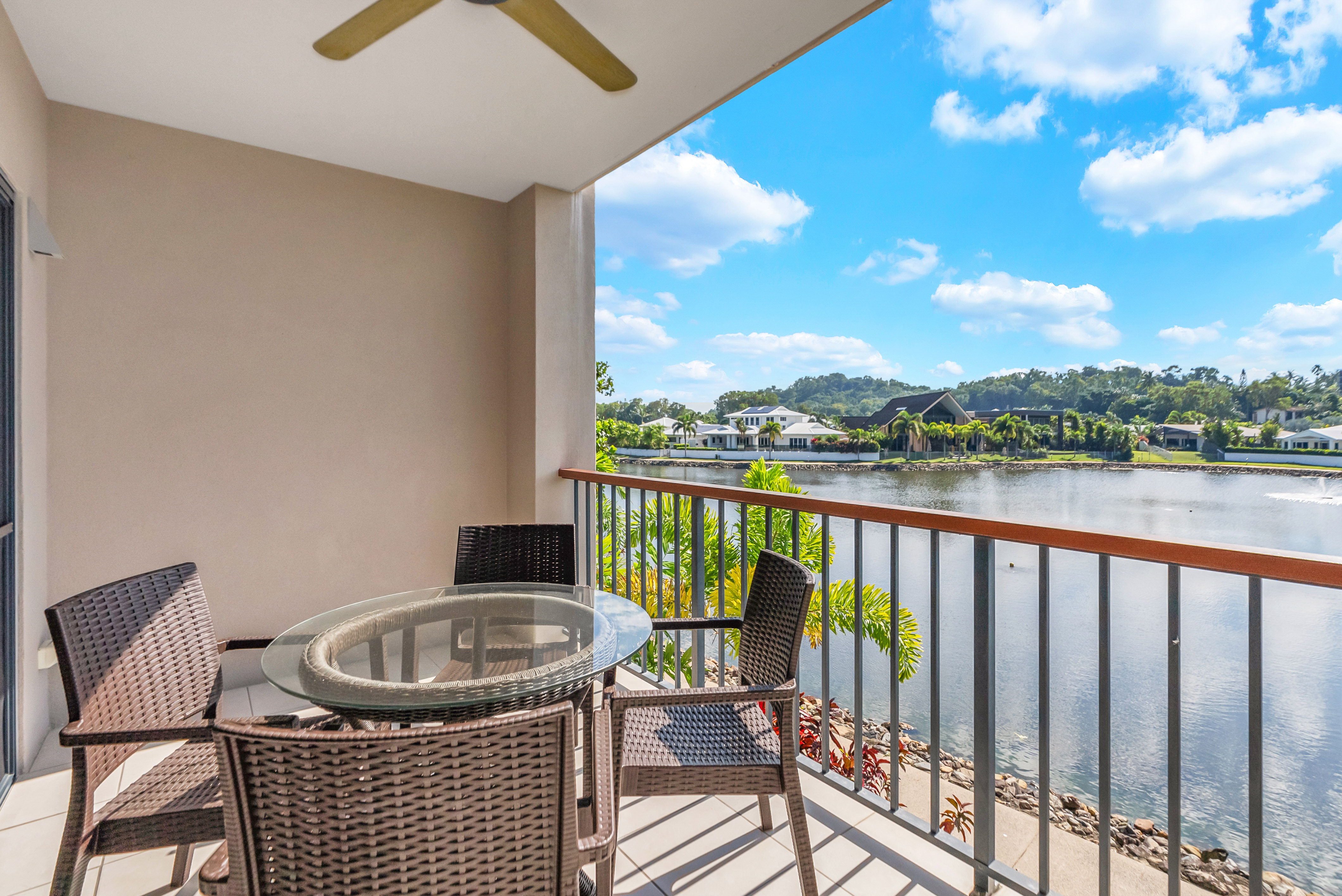 The apartment exudes a feeling of luxury and relaxed living, set amongst immaculately manicured tropical gardens, the huge lagoon and the backdrop of the Macalister Range. Trinity Beach is displaying all of the very best FNQ way of life with these apartments, offering, water views, a couple of minutes walk to the beach, Rainforest walks and nearby fishing from the Jetty at Palm Cove. Should you ever find a reason to leave, Cairns Domestic and International airport is only a short 25 min drive.